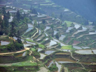 Les paysages sont étonnants en raison de la géologie Karstique qui produit des infinités de mamelons entrecoupés de rizières très travaillées
