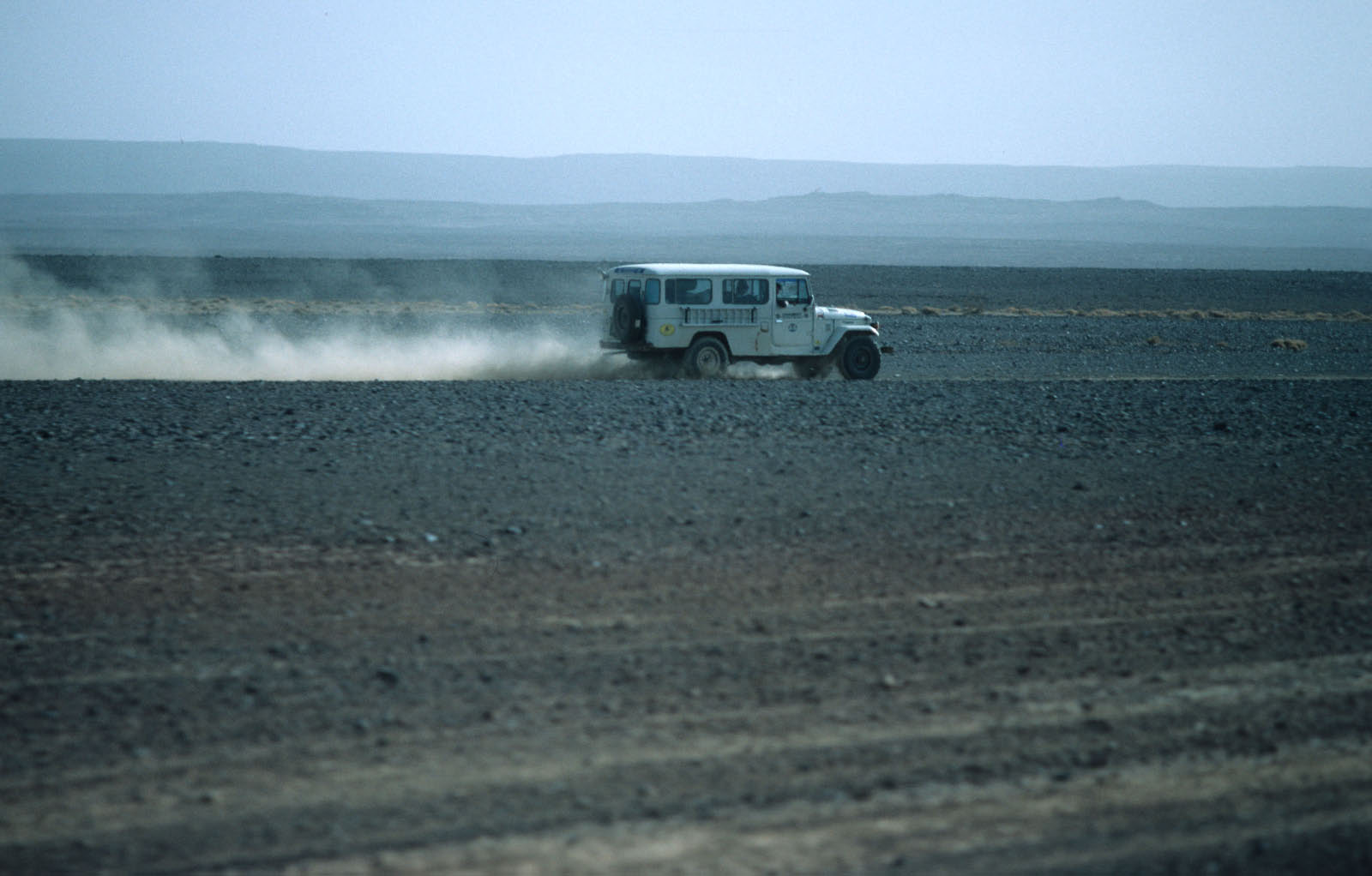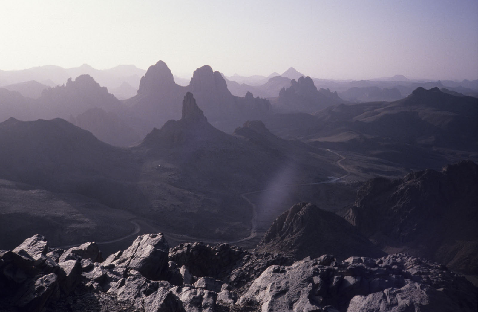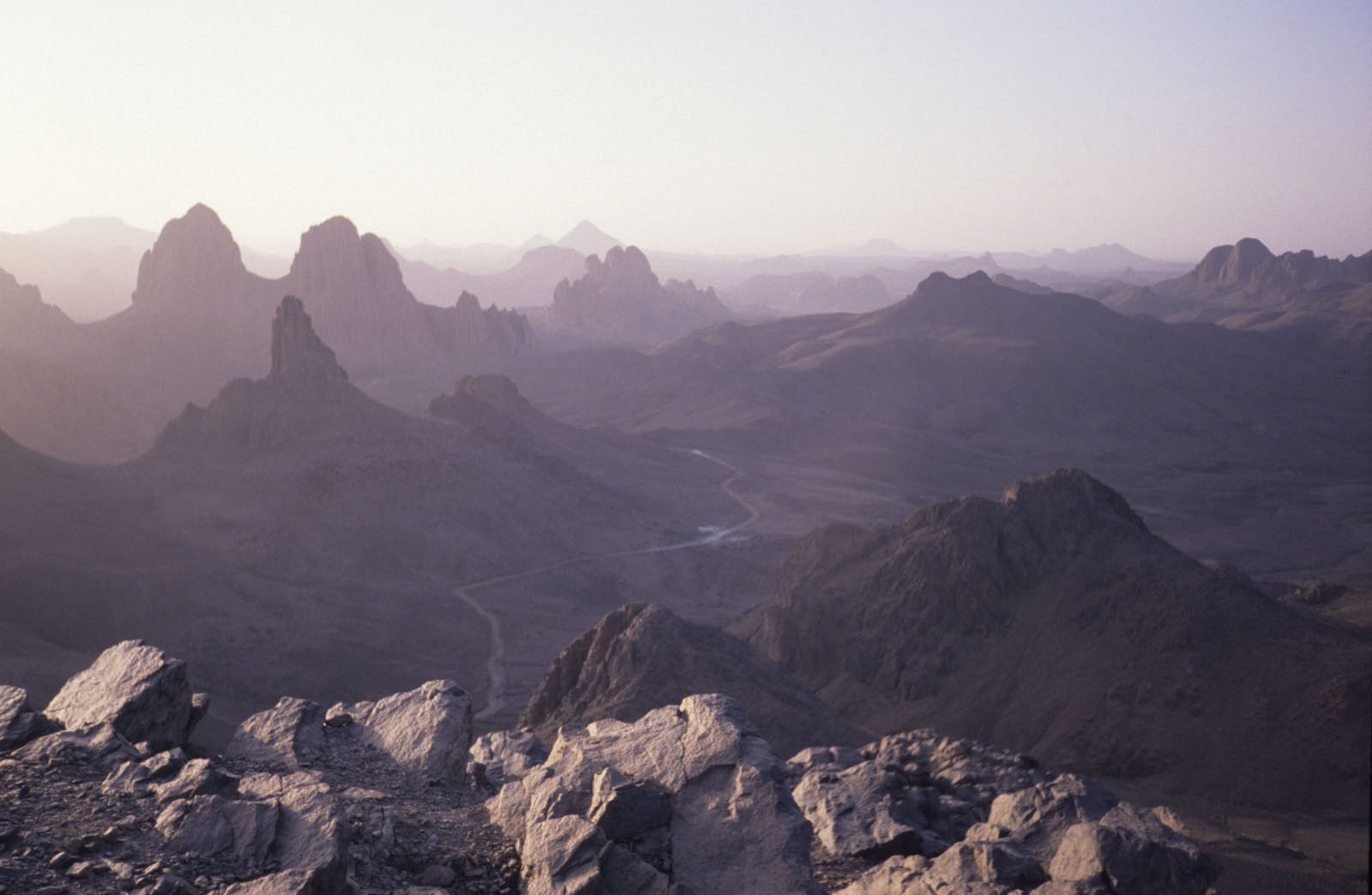 Parti de Marseille en ferry pour Tunis, nous passons en Algérie à Constantine, puis la traversée des Aurès, la descente à travers les puits de pétrole d’Hassid Messaoud, puis In Amenas, Illizi, le plateau du Fadnoun, pour atteindre Djanet ! De là, à la suite de la rencontre de Rhibba et de son oncle Mohamed, c’est hors-piste (ou en suivant la piste des Touaregs) que nous gagnerons Tamanrasset.