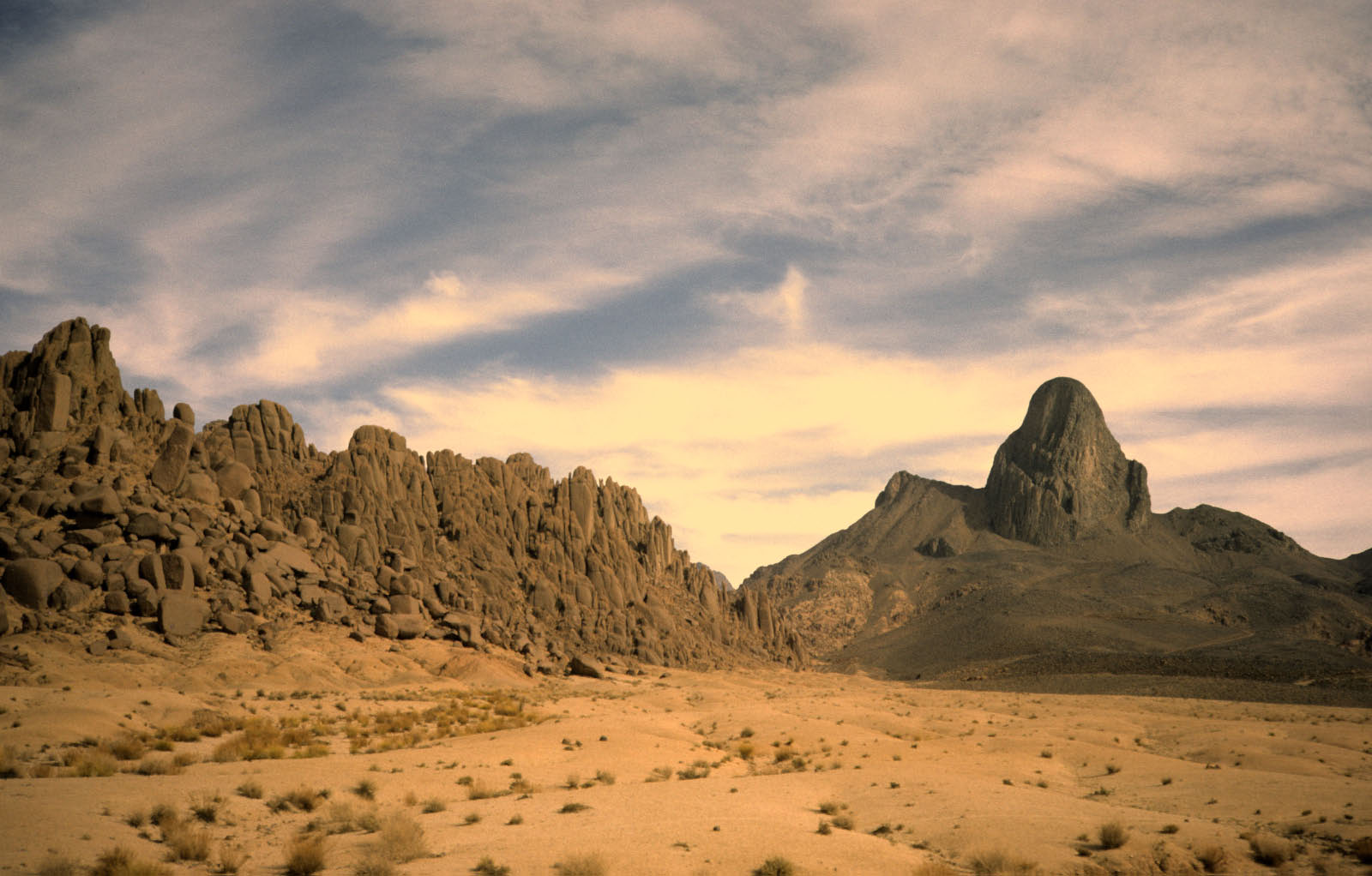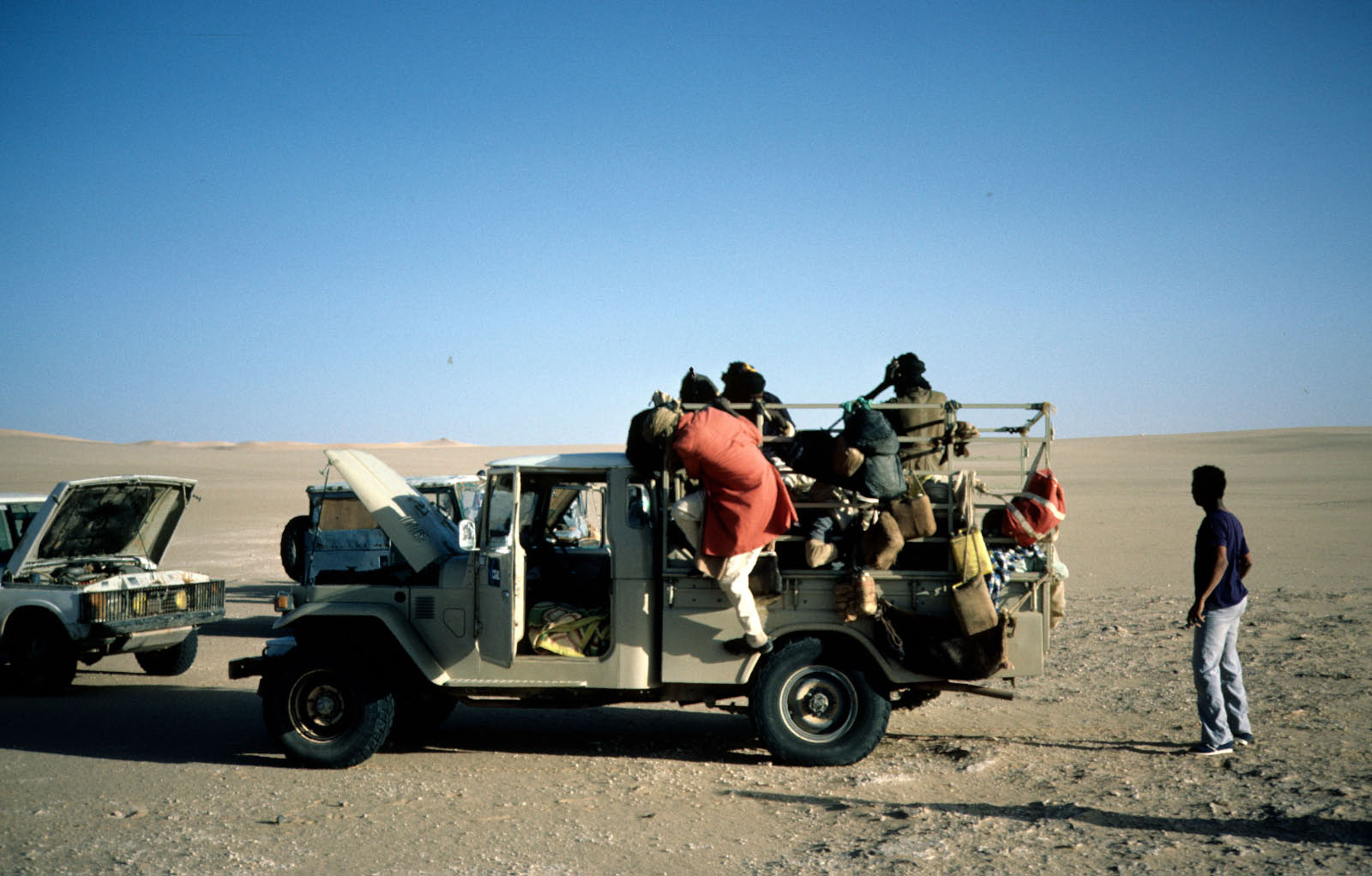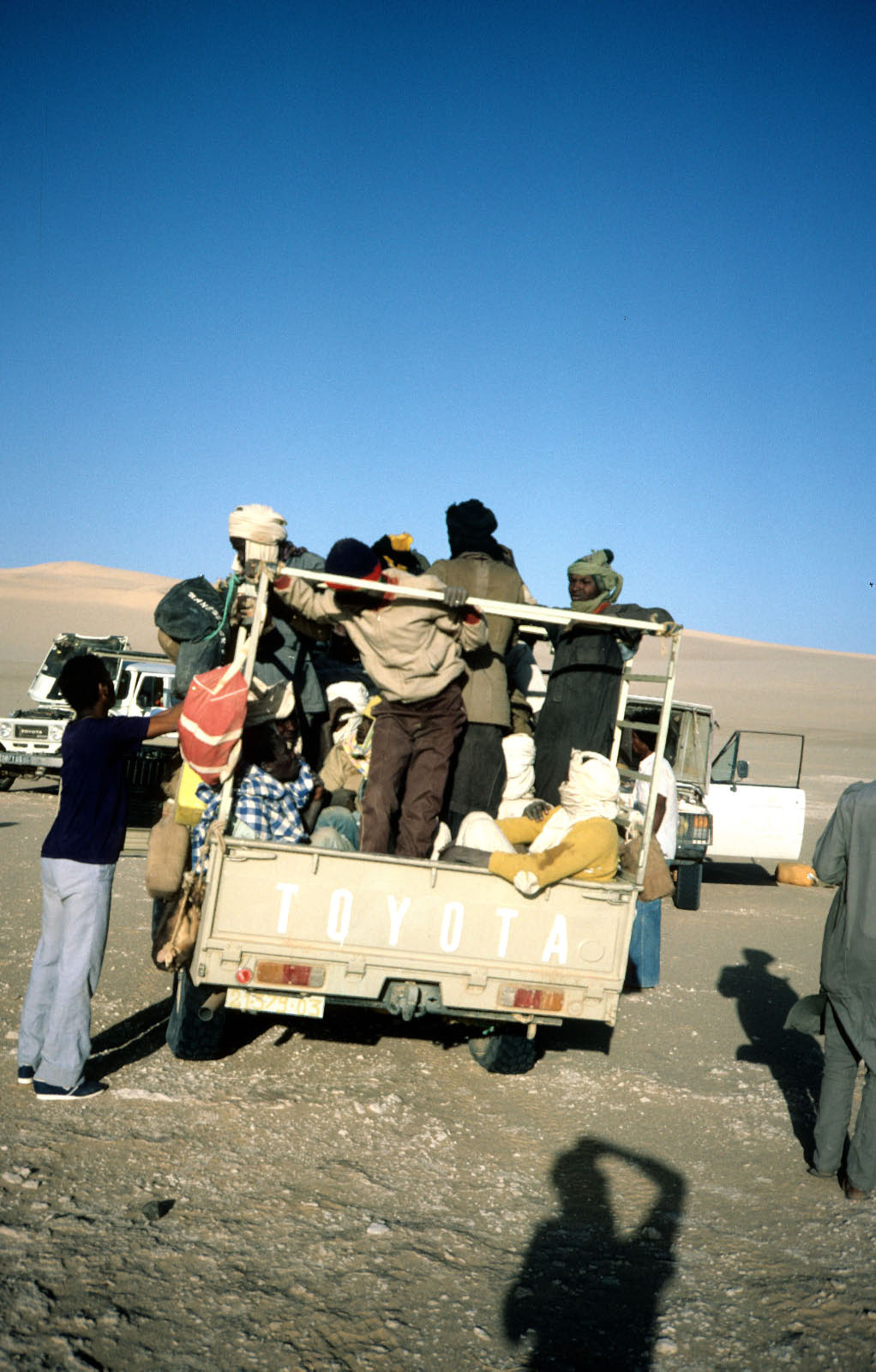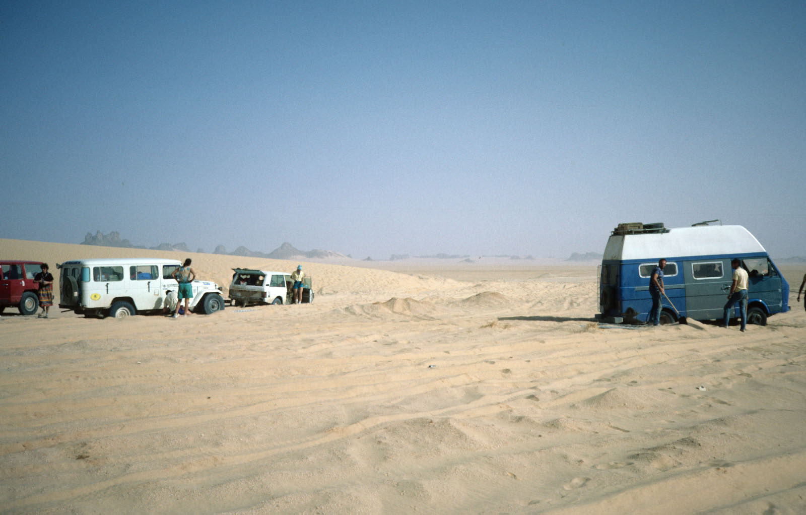 Parti de Marseille en ferry pour Tunis, nous passons en Algérie à Constantine, puis la traversée des Aurès, la descente à travers les puits de pétrole d’Hassid Messaoud, puis In Amenas, Illizi, le plateau du Fadnoun, pour atteindre Djanet ! De là, à la suite de la rencontre de Rhibba et de son oncle Mohamed, c’est hors-piste (ou en suivant la piste des Touaregs) que nous gagnerons Tamanrasset.
