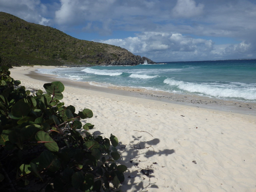 Il reste encore quelques plages désertes à Saint Martin. Nous avons la chance qu'une partie de la côte, côté français, soit déclarée parc naturel et donc échappe aux bétonnages qui est important coté hollandais. Les côtes exposées au vent sont assez sèches et sauvages. Les cactus y sont endémiques dont les coussins de belle-mère appelés ici "tète à l'anglais"... tout un programme