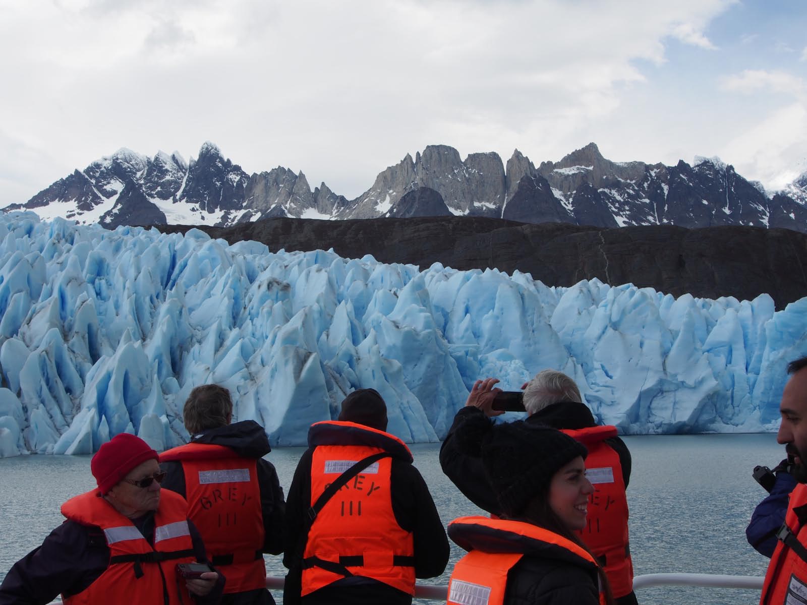 La Patagonie chilienne compte un des plus beaux parcs naturels classés au patrimoine mondial : le parc des Tore del Paine. Tour du Paine. Elles sont remarquables par leur aspect bicolore due a une géologie contrastée. Situe au pied de la calotte polaire d’Amérique du Sud, la visite du parc permet d’aller à la rencontre des langues glacière qui en descendent en se délitant dans des lacs superbes. (Glacier del Grey)