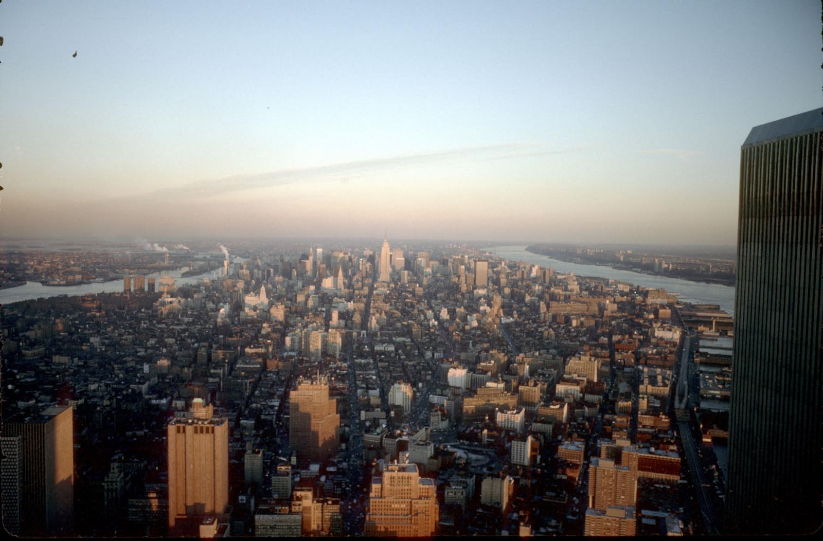 Manhattan: L'arrondissement le plus célèbre de New York, Manhattan est le cœur financier et culturel de la ville. Il abrite des gratte-ciels emblématiques tels que l'Empire State Building, le Chrysler Building et les tours du One World Trade Center qui existaient encore à l’époque du voyage.