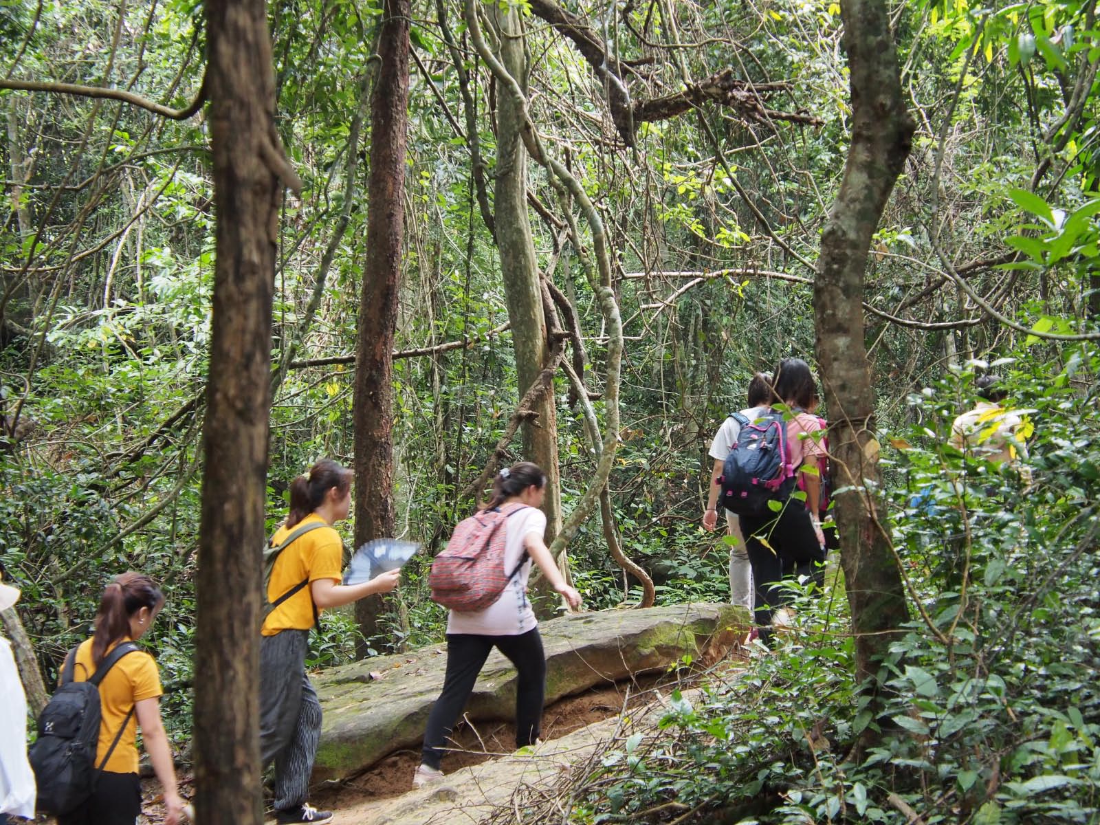 Le matin, à travers les paysages de la campagne cambodgienne, nous rejoignons Kbal Spean appelé "la rivière aux mille lingas" et ses curieuses sculptures surgissant du lit de la rivière. Le site est un peu difficile d'accès. Il est à 45 minutes de marche dans le lit assez accidenté d'une rivière. Le temps est maussade et les averses nous accompagneront une partie du parcours.