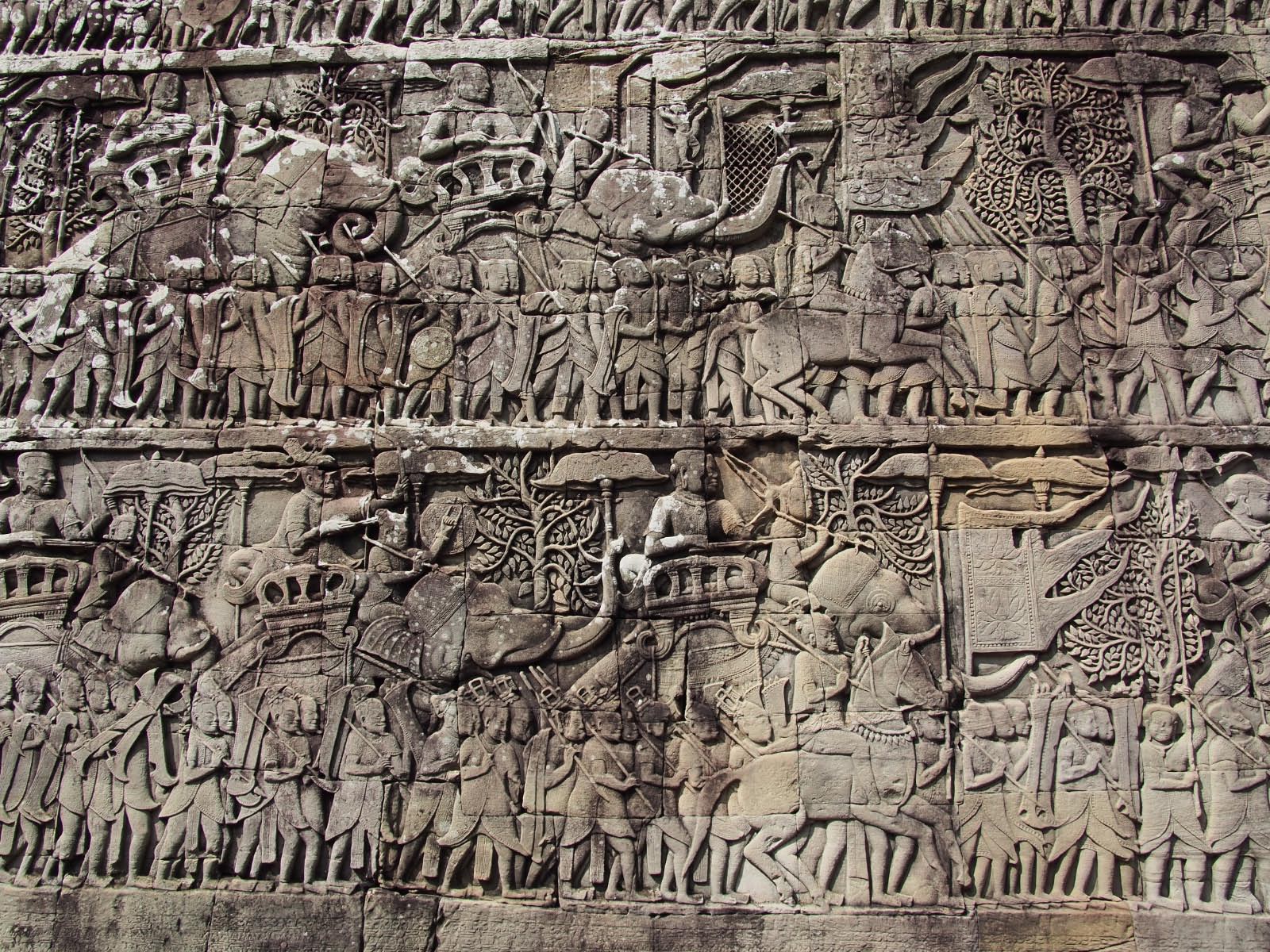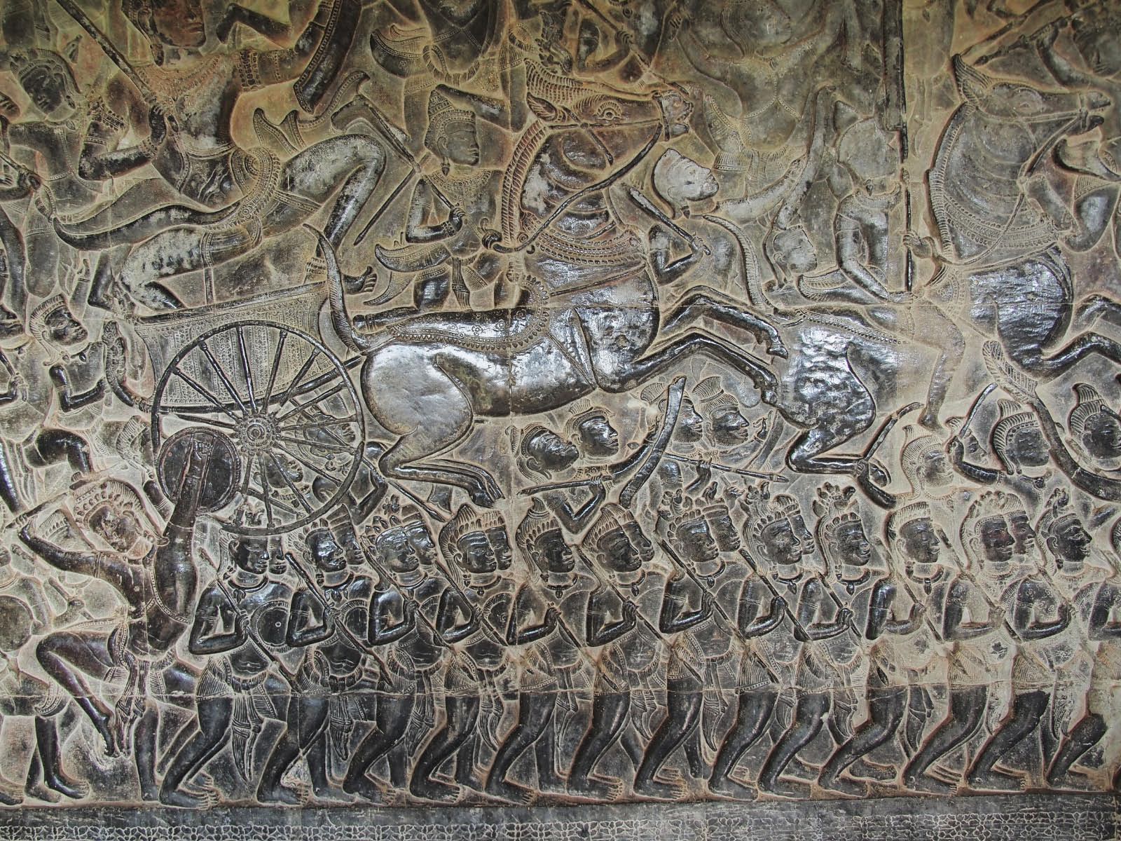 Les galeries qui l’entourent sont des merveilles de bas reliefs sur des centaines de mètres qui comptent l’histoire du Ramayana et de la vie khmère.