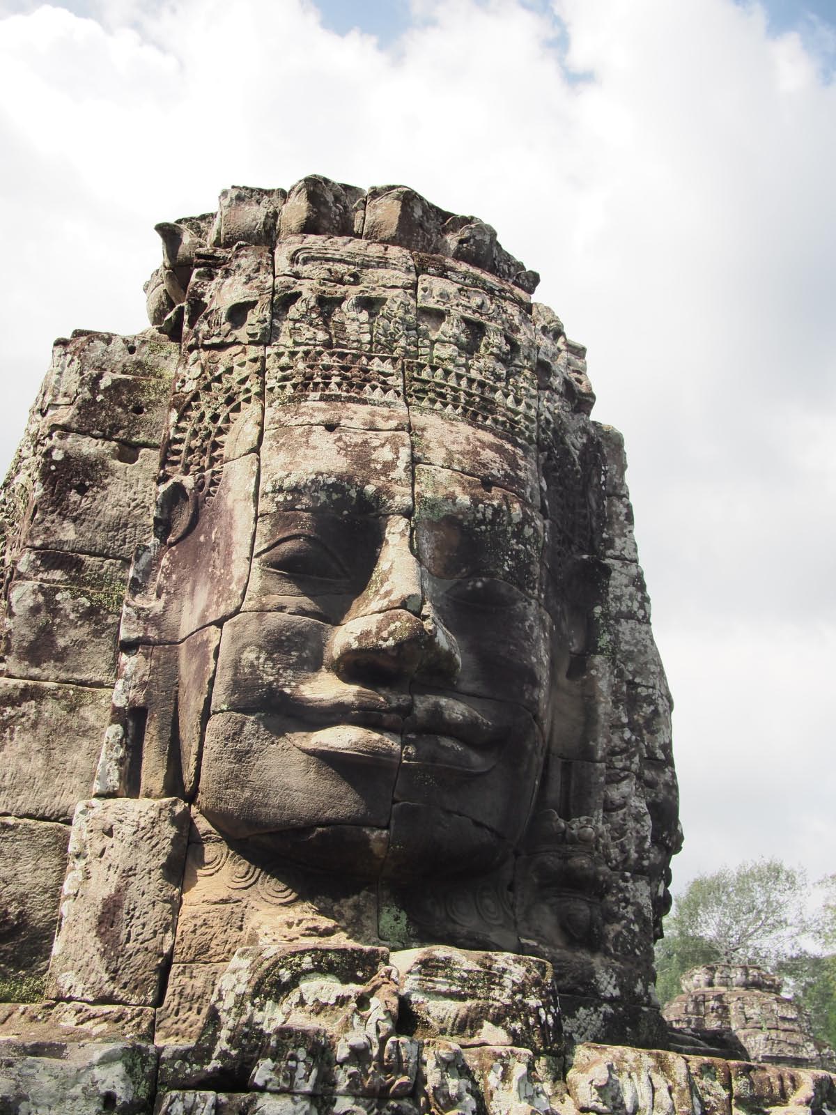 À son apogée, la cité devait compter deux cent mille habitants. De la haute enceinte, quatre routes convergeaient vers le temple central, le Bayon. Celui-ci, richement sculpté, est constitué de sanctuaires ornés de visages monumentaux. C’est un des plus connu et emblématique des sites d’Angkor.
