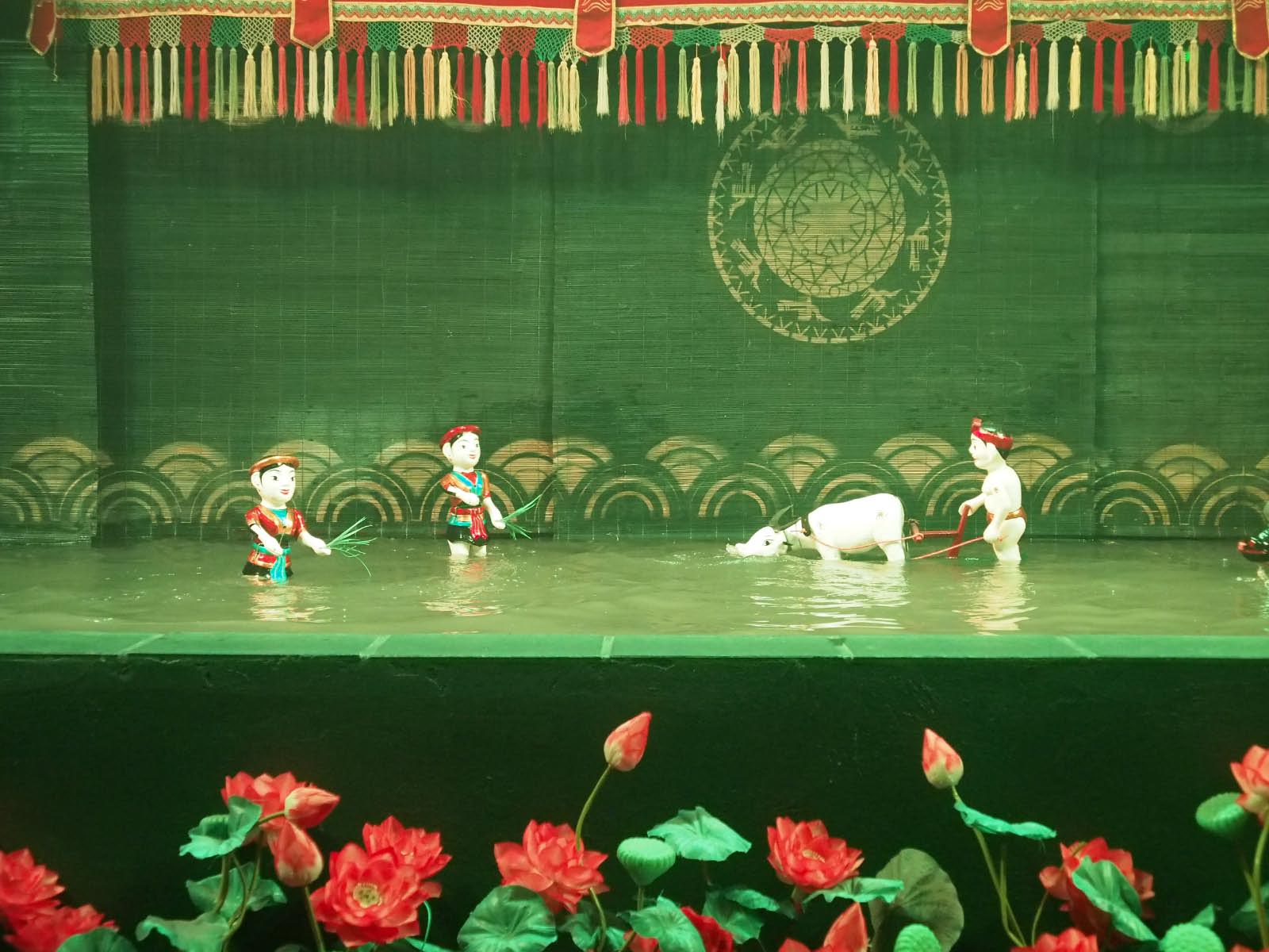 Le soir, nous assistons à un spectacle de marionnettes sur l'eau dont raffolent les Vietnamiens et qui s'avère plein de poésie.