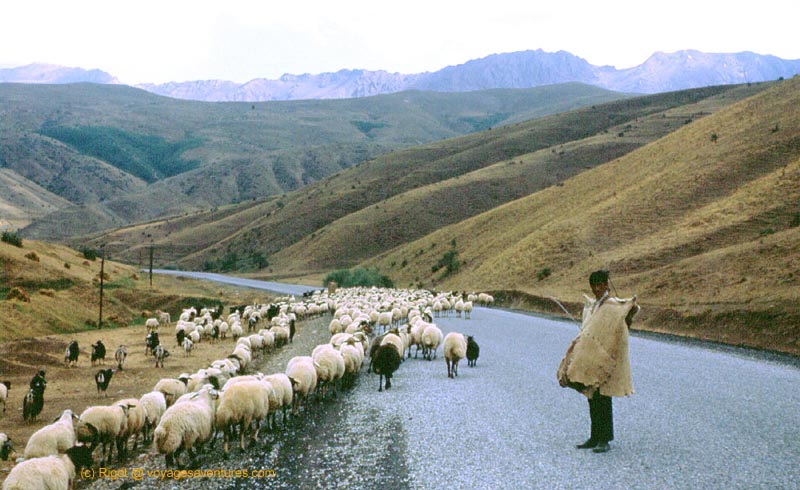 Le Kurdistan Turque est une région rude, au climat montagneux, continental, froid en hiver et très chaud et sec en été. L'élevage des chèvres et des moutons constituent les seules ressources des pasteurs de la région. Le palais caravansérail de Dogubayazit a de beaux restes, au pied du mont Ararat où aurait échoué l'arche de Noé.