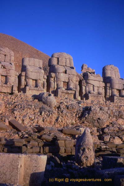 Plus au Sud-est vers le Kurdistan, le royaume antique de Commagène eu un monarque mégalomane (Antiokos) qui fit ériger une sépulture monumentale au sommet d'une montagne : le Nemrut Dag (2150m). C'est un spectacle grandiose que d'y assister au lever du soleil.