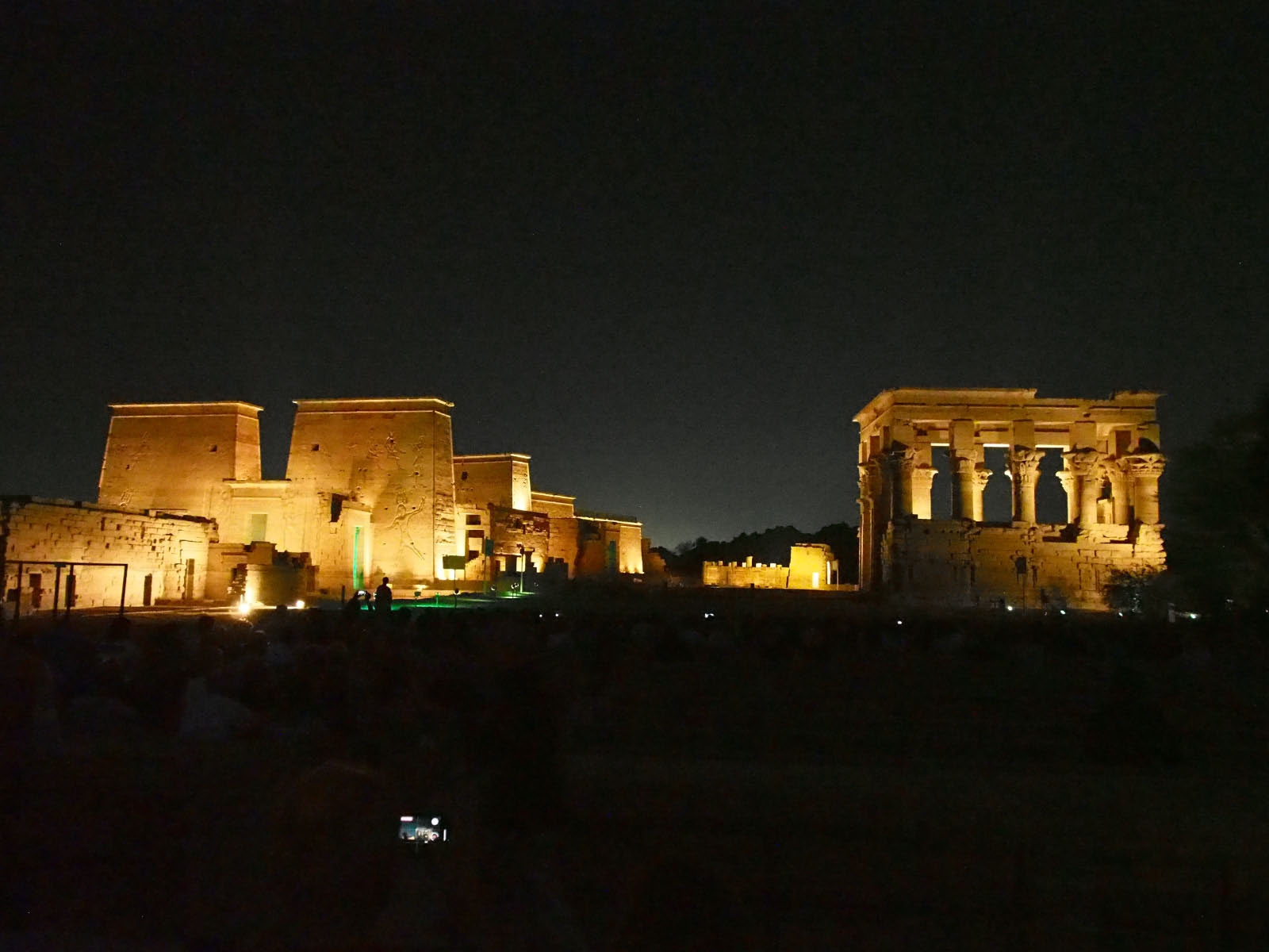 Le soir, nous participons au son et lumière au temple de Philae. Le spectacle est organisé pour proposer le déplacement à l’intérieur de l’espace archéologique sonorisé et illuminé