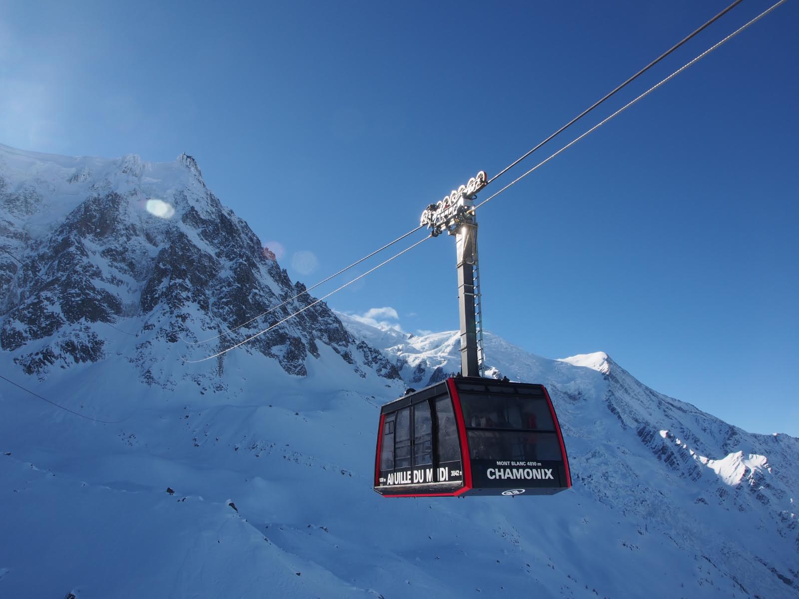 L'Aiguille du Midi est une aiguille rocheuse située à environ 3 842 mètres d'altitude, accessible par un téléphérique depuis Chamonix. Ce téléphérique est l'un des plus hauts du monde et offre des vues panoramiques spectaculaires sur le Mont Blanc et les Alpes.