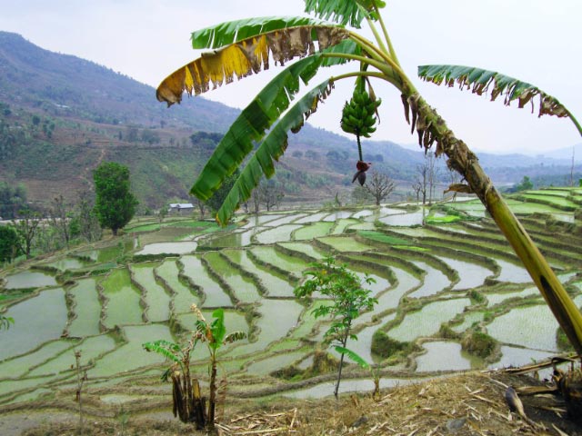 Le climat est marqué par la mousson importante qui se déverse sur la région. Les villages, nombreux s’épanouissent au milieu des rizières. Jusqu’à plus de 3000m elles s’étagent en d’incroyables escaliers à flanc de montagne