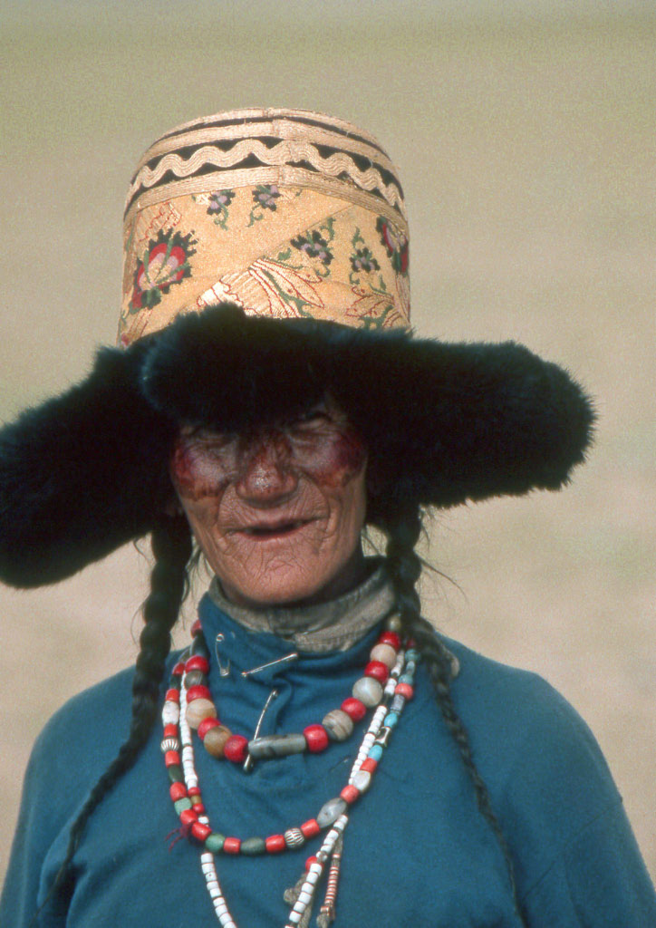 Chaude coiffe d'une tibétaine Drog pa du Chang Tang Nomades (Drog pa) du Chang Tang Femme nomade (drog pa) du Chang Tang