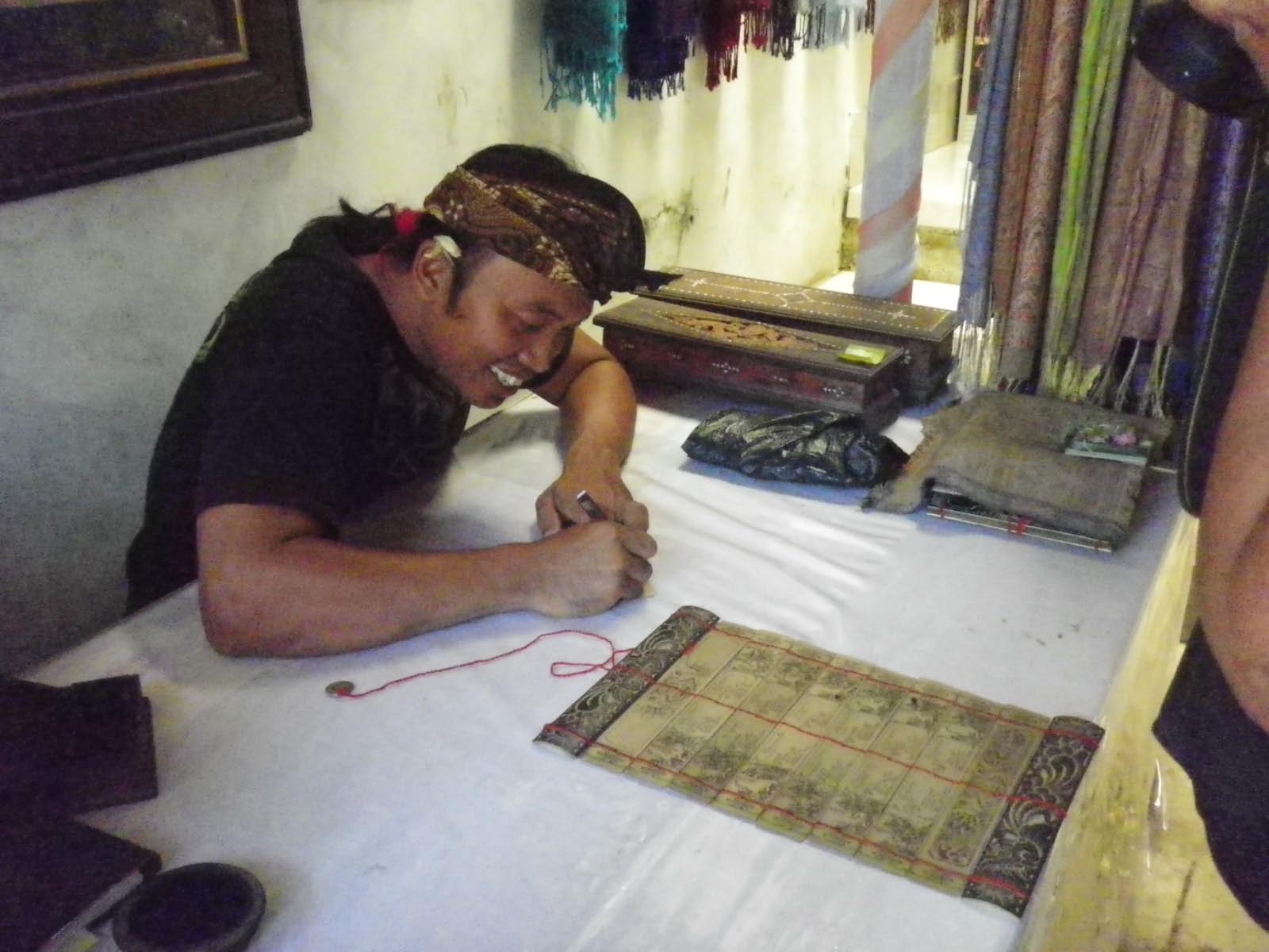 travail artisanal de gravures sur des feuilles de lontard (palmier)