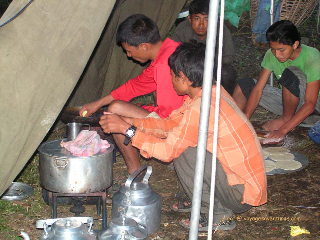 L'équipe de cuisine part juste après nous, et nous double rapidement, pour commencer à préparer, dès 10 ou 11 heure, le repas chaud de la mi-journée d'au moins deux plats.