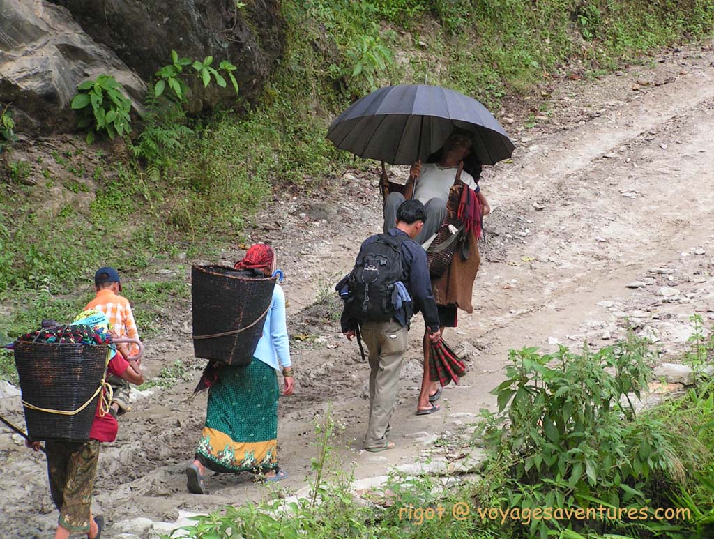 Les porteurs sont les routiers du Népal. Dans ce pays montagneux, les routes sont peu nombreuses et se limitent aux vallées les plus importantes. Pour la majorité des villages de montagne, le ravitaillement est donc réalisé à dos d'homme (et quelques fois de femmes).