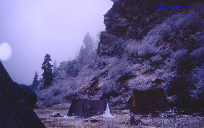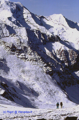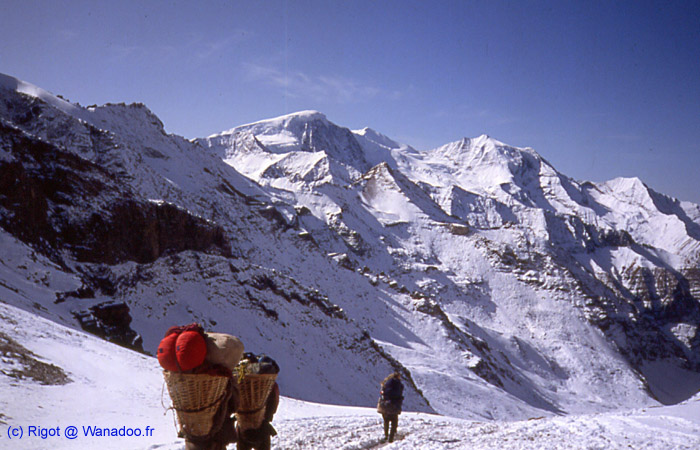 Deux cols sont à franchir, pour boucler notre trek: Num La (5100m) puis Bag La (5050m) où fut tourné le film Himalaya. Nous par chance, nous n'avons pas eu de tempête de neige, elle venait de passer. Notre campement à 4800m, entre les deux cols fut particulièrement frais, et il faut penser à équiper nos porteurs Népalais peu habillés pour résister aux mauvais temps.