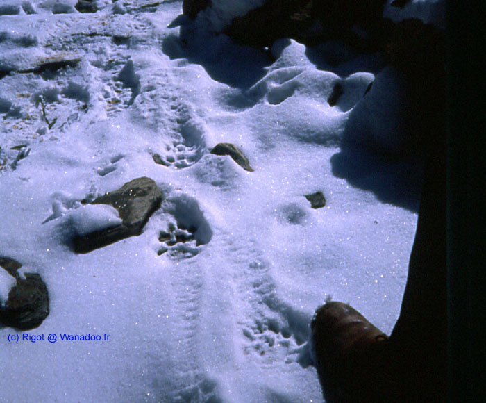 Le froid et la neige de fin octobre nous surpris un beau matin, et ce sont peut être les traces d'un léopard des neiges, passé là dans la nuit?