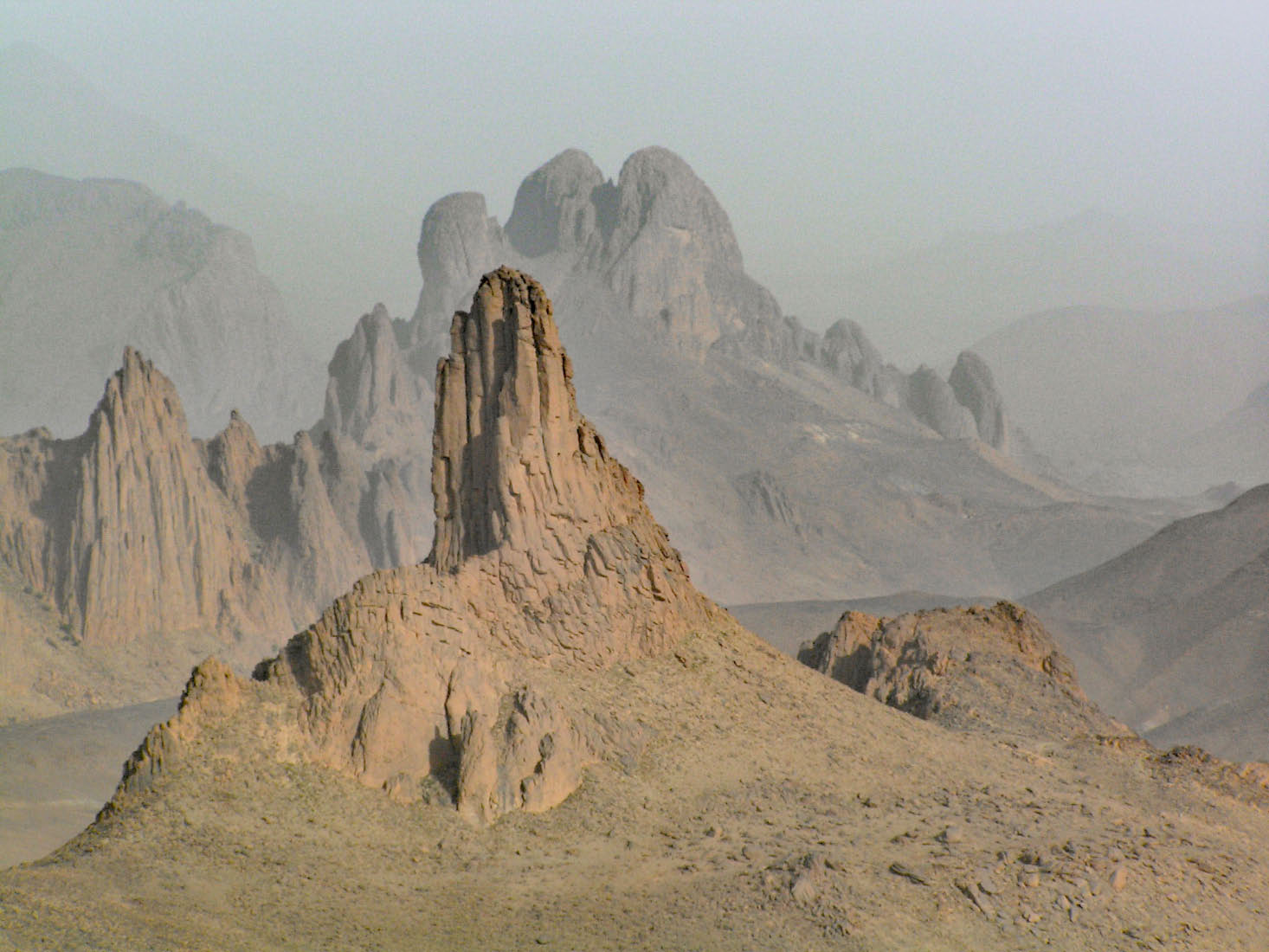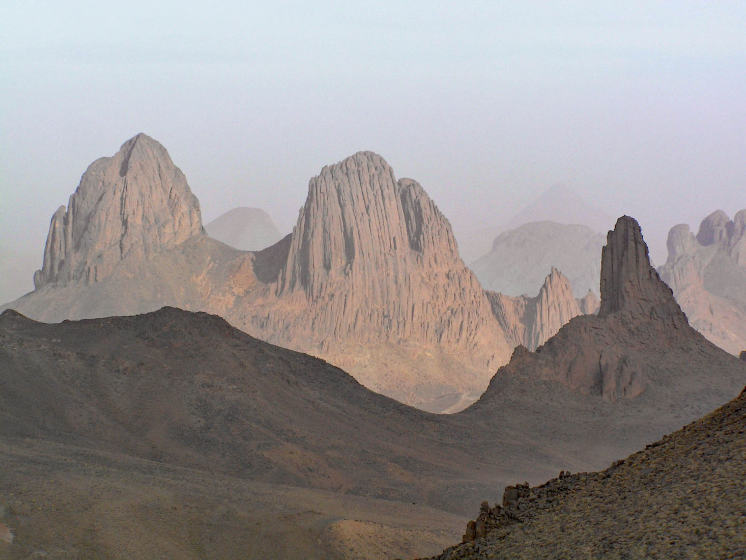 Le Hoggar est le Massif central du Sahara. Le relief aride, particulièrement tourmenté a son origine dans l’activité volcanique importante dont il ne reste que d’importantes cheminées basaltiques qui ponctuent le paysage. Le point culminant du massif est le pic Tahat (3003m).