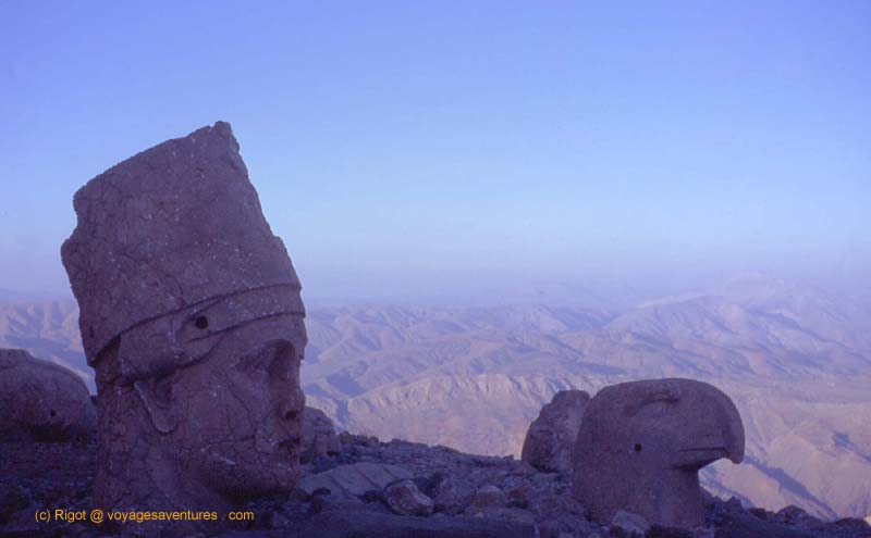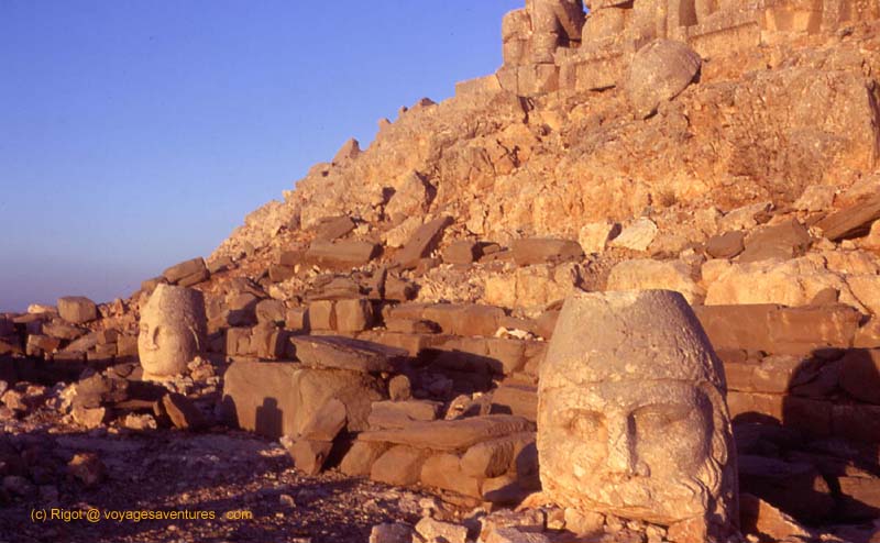 Plus au Sud-est vers le Kurdistan, le royaume antique de Commagène eu un monarque mégalomane (Antiokos) qui fit ériger une sépulture monumentale au sommet d'une montagne : le Nemrut Dag (2150m). C'est un spectacle grandiose que d'y assister au lever du soleil.