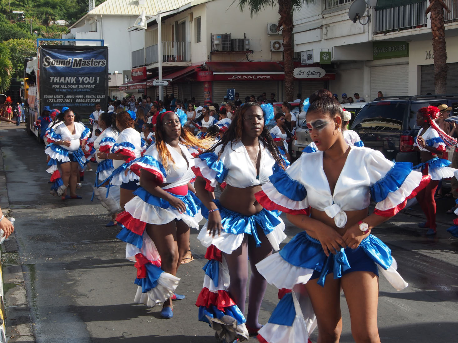 Plusieurs milliers de personnes se rassemblent pour plusieurs défilés. Le plus animé a eu lieu le mardi gras. Avec moins de groupes de danseurs qu'a celui de Philipsburg, le corso comprend selon les années une demi-douzaine de semi-remorques équipes d'énormes groupes électrogènes qui déversent leur musique endiablée par leur" mur de son" à faire vibrer les boyaux !
