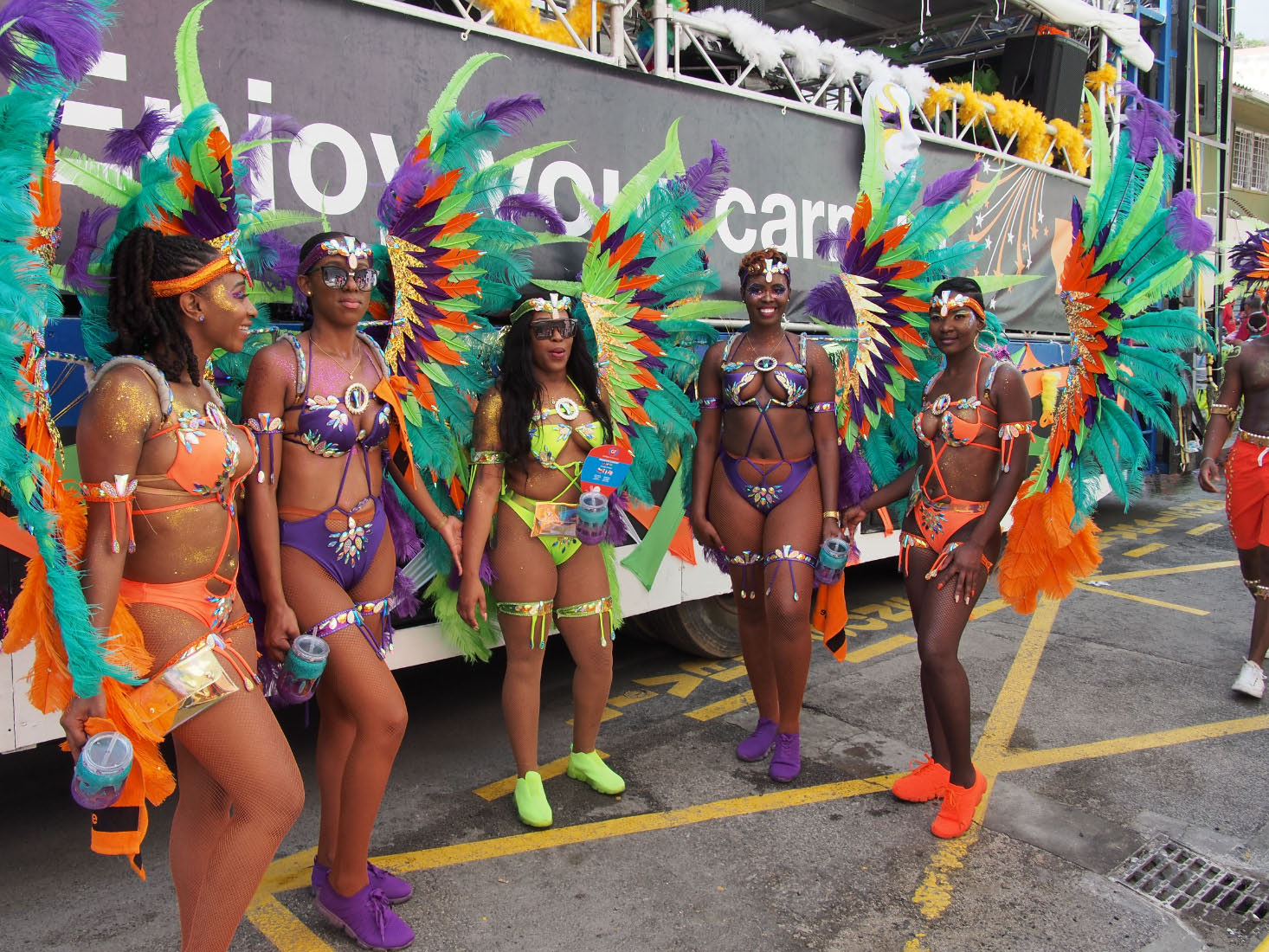 Les débauches de plumes sont des rituels de ce genre de démonstration. D'ailleurs nombre de danseurs et danseuses brésiliennes entament un tour des îles, après le carnaval de Rio, et nous aurons encore pour quelques semaines, des soirées animées.