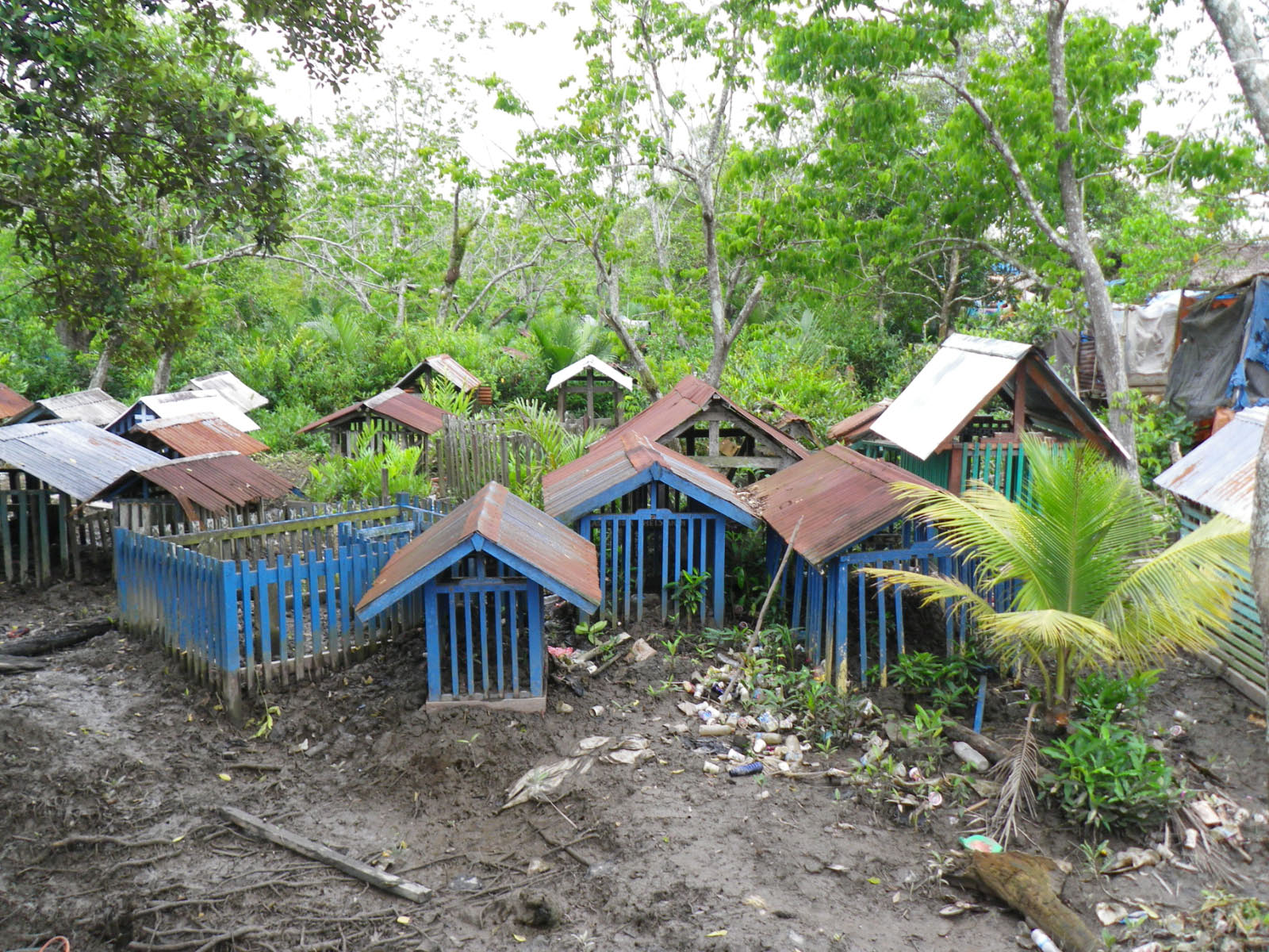 Lorsque survient un décès, la famille et les amis du défunt se roulent dans la boue des berges afin de dissimuler l’odeur et le parfum de l'âme du mort. (L’enterrement étant difficile dans ces terres inondées, on peut penser que, entreposé dans ou sous la maison, les odeurs du cadavre sont fortes pour ceux qui n’ont pas les moyens de l’embaumer)