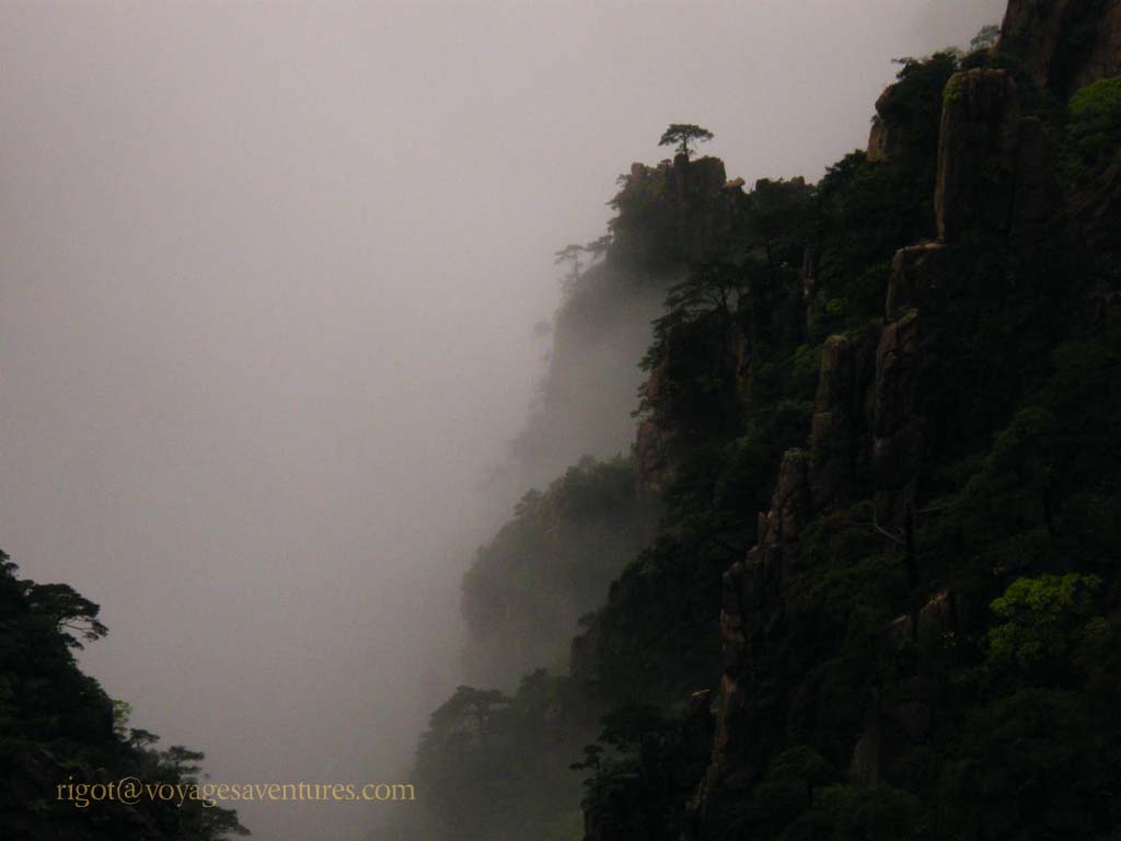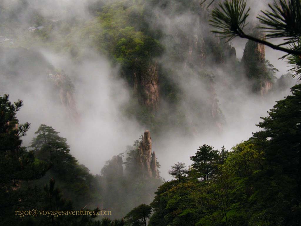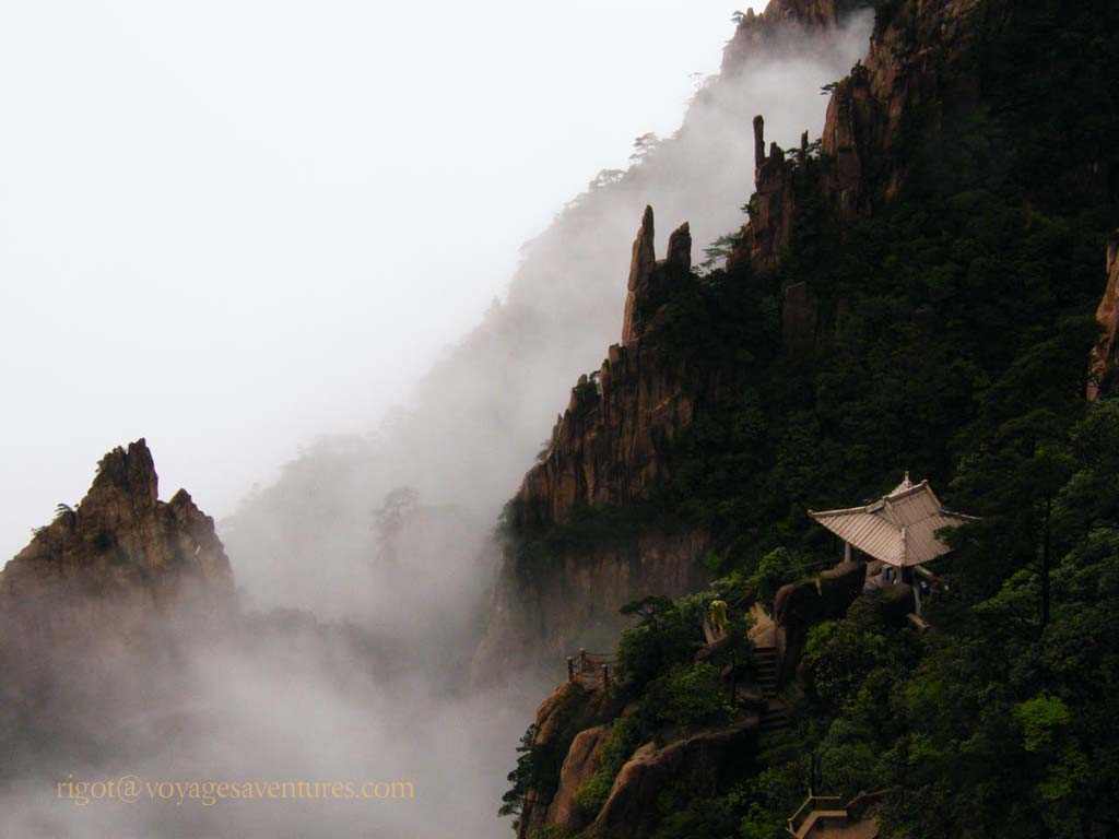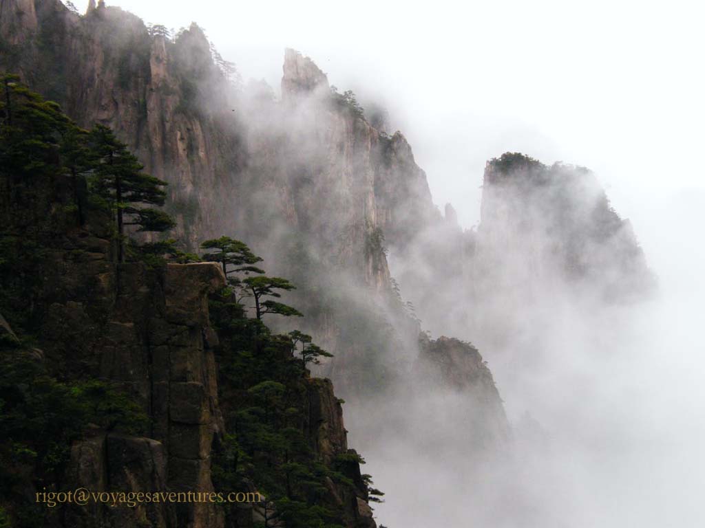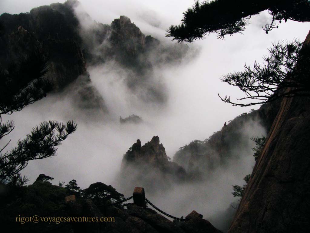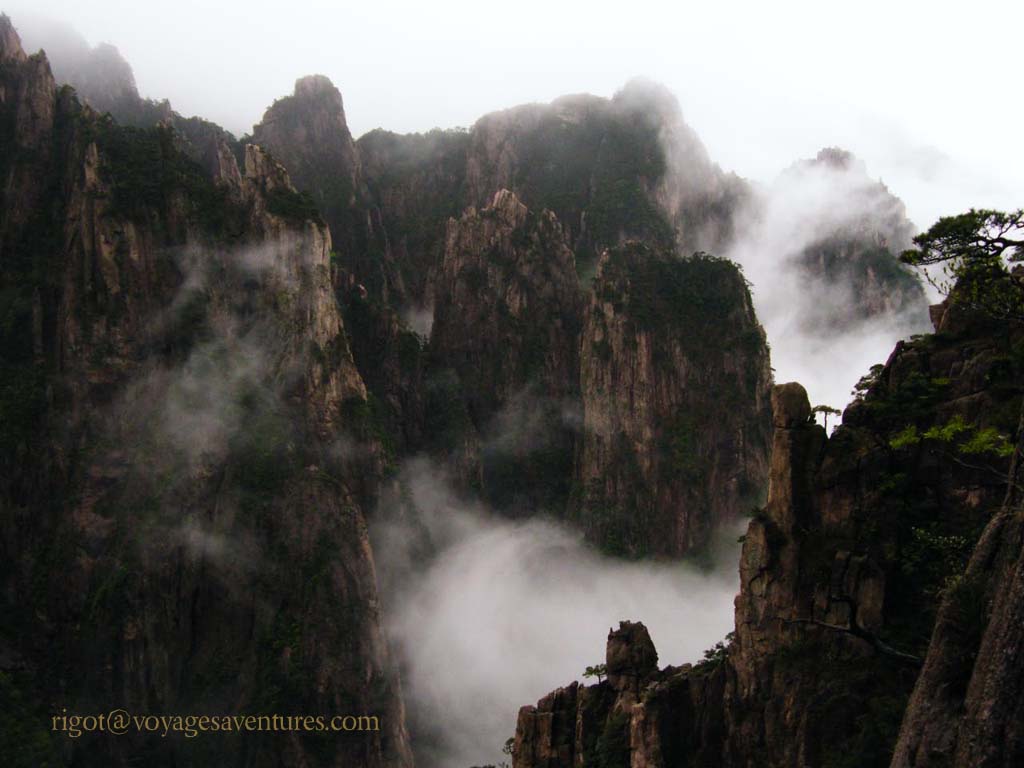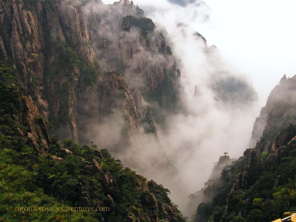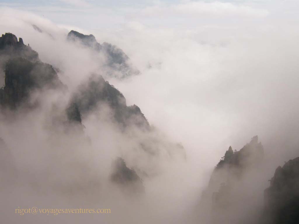 Le Huang Shan est un massif granitique extraordinairement découpé situé à 250km au sud-ouest de Shanghai, dans la province de Anhui. Plus de 70 pics entre 1000 et 2000m d'altitude émergent le plus souvent d'une mer de nuage ou déchirent la brume dans des paysages d'une étrange beauté.
