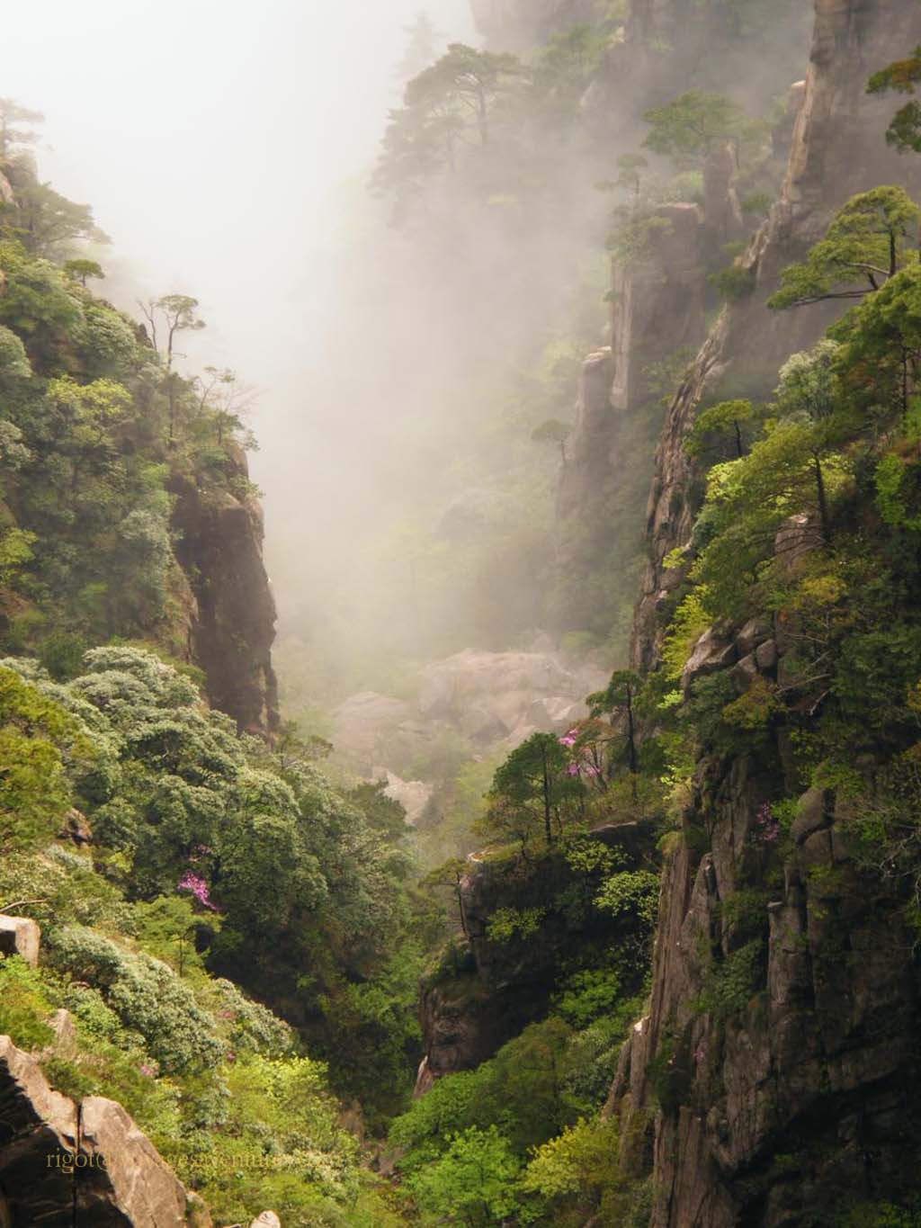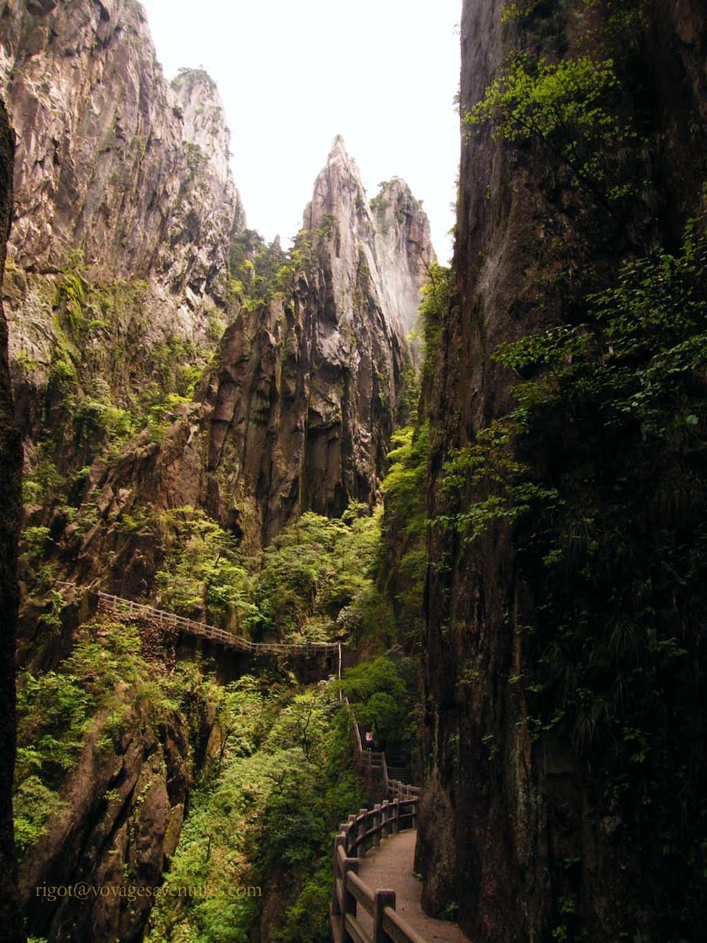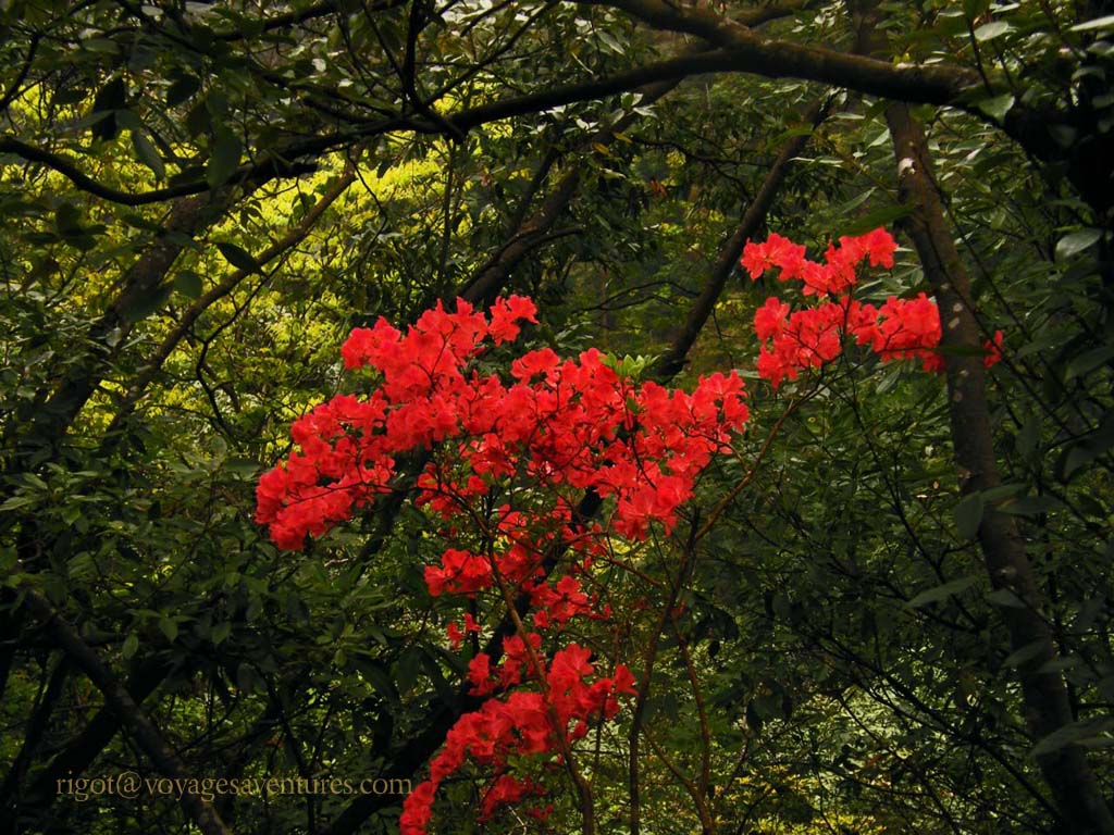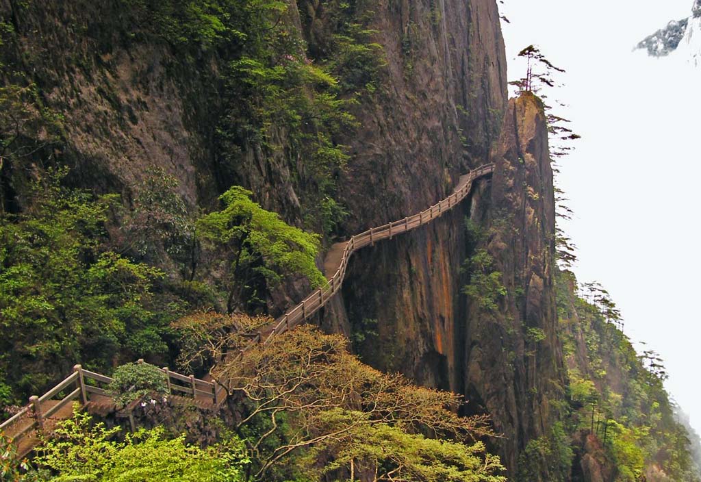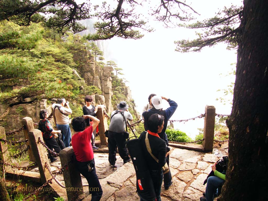 Les points de vue sur les parois déchiquetées, parsemées d'une végétation tourmentée, a inspiré la peinture chinoise depuis des lustres. Les forêts de conifères, noueux comme des bonzaïs, les rhododendrons, et le Azalées jalonnent les chemins bien dallés reliés par des escaliers très aériens aux milliers et milliers de marches.