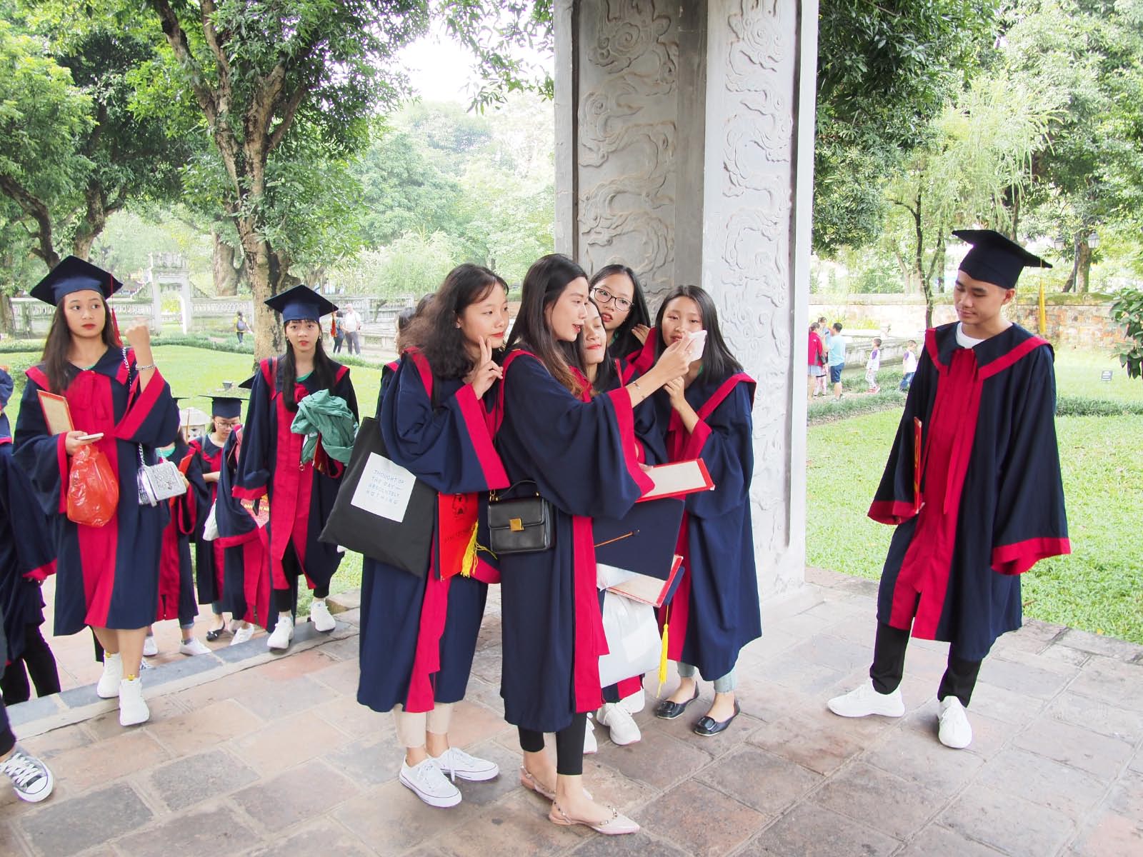Ce matin, nous visitons le temple de la Littérature, fondé en 1070, placé sous la protection de Confucius qui servit d’université pour les fils des grandes familles. De jeunes étudiants sont d’ailleurs présents ce matin-là pour faire des photos de promo.