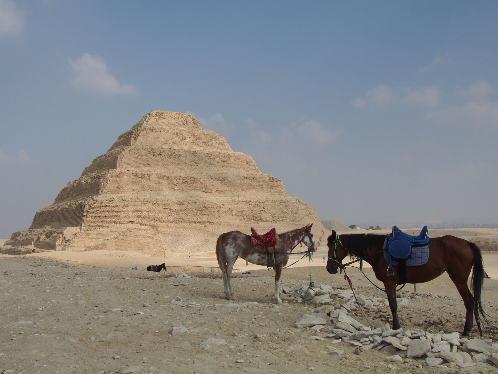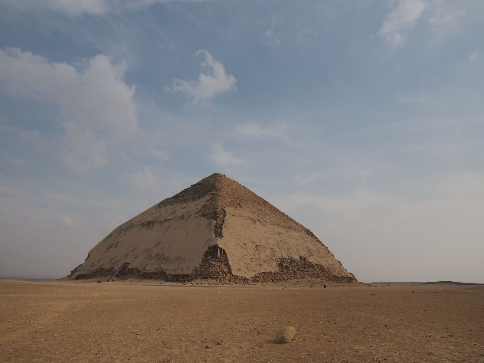 .L'après-midi, nous découvrons les pyramides de Dahchour, dont la fameuse "rhomboïdale" (*) à faces lisses et la délicate "pyramide rouge". Ces pyramides, érigées pour le pharaon Snefrou, ont été rouvertes au public en juillet 2019 après des décennies de fermeture.