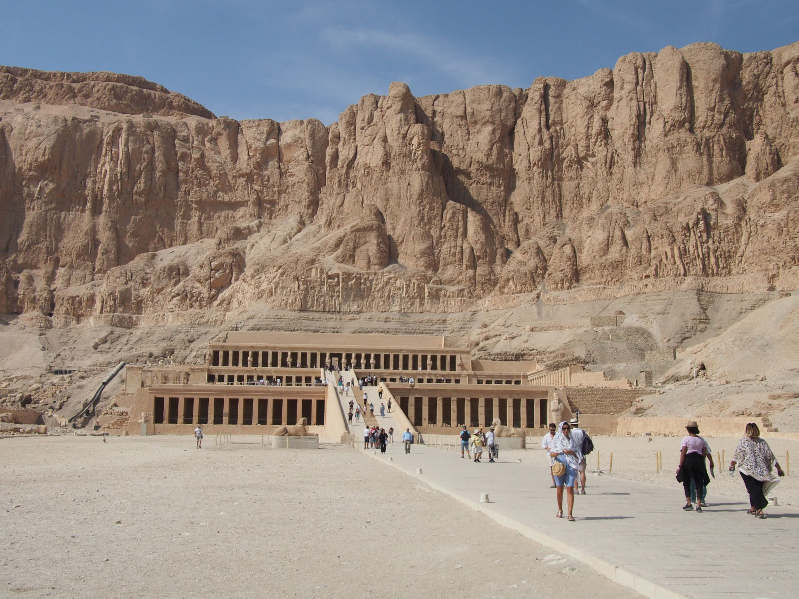 On va ensuite rendre hommage à Hatchepsout, la "reine-pharaon", à Deir el-Bahari. Son temple funéraire déploie ses immenses perspectives horizontales aux pieds de la cime thébaine. Ses bas-reliefs représentent la théogamie qui se joua entre la reine et le roi Amon, et l'expédition au pays de Pount, d'où les marins égyptiens rapportèrent l'or et l'encens.