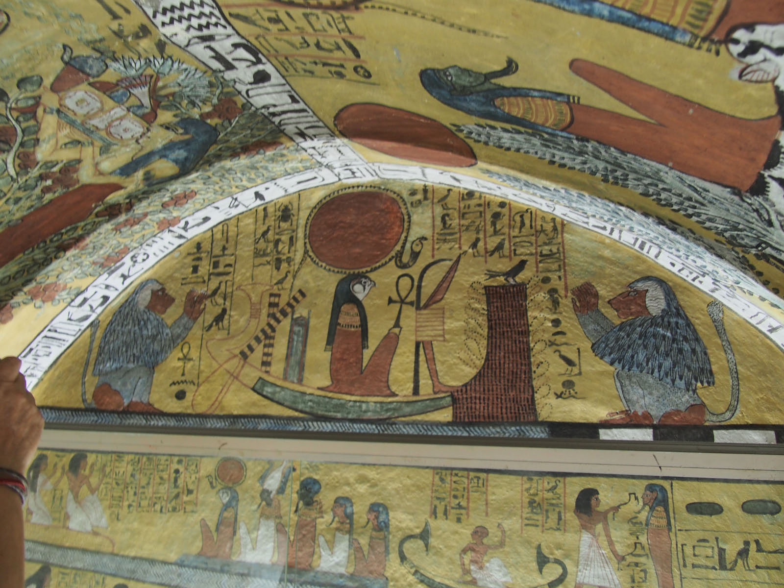 Avant de quitter le domaine des tombes, nous découvrirons le village de Deir el-Médineh dans lequel vécurent et moururent, les hommes qui percèrent et décorèrent les tombes royales. La décoration de leurs caveaux, mélange de naïveté et d'érudition, se distingue par la fraîcheur des couleurs.