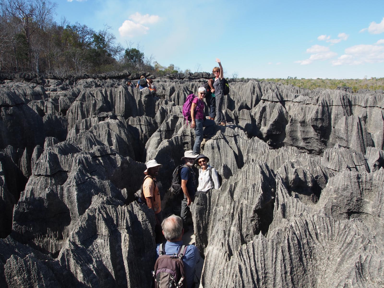 Au programme : randonnées pédestres dans les Hautes Terres fertiles et ses rizières ondoyantes, visite des villages, descente en chaland pour 2 jours sur la tranquille rivière Tsiribihina. Visite des Tsingy, l’un des sites les plus étonnants qui soient, puis journée de repos à Tsanganjoly, situé sur un delta et près des salines. Nous avons poursuivi notre visite pas la forêt caducifoliée de Kirindy, et clou du spectacle, le coucher de soleil à la fameuse allée des Baobabs pour quelques photos spectaculaires,