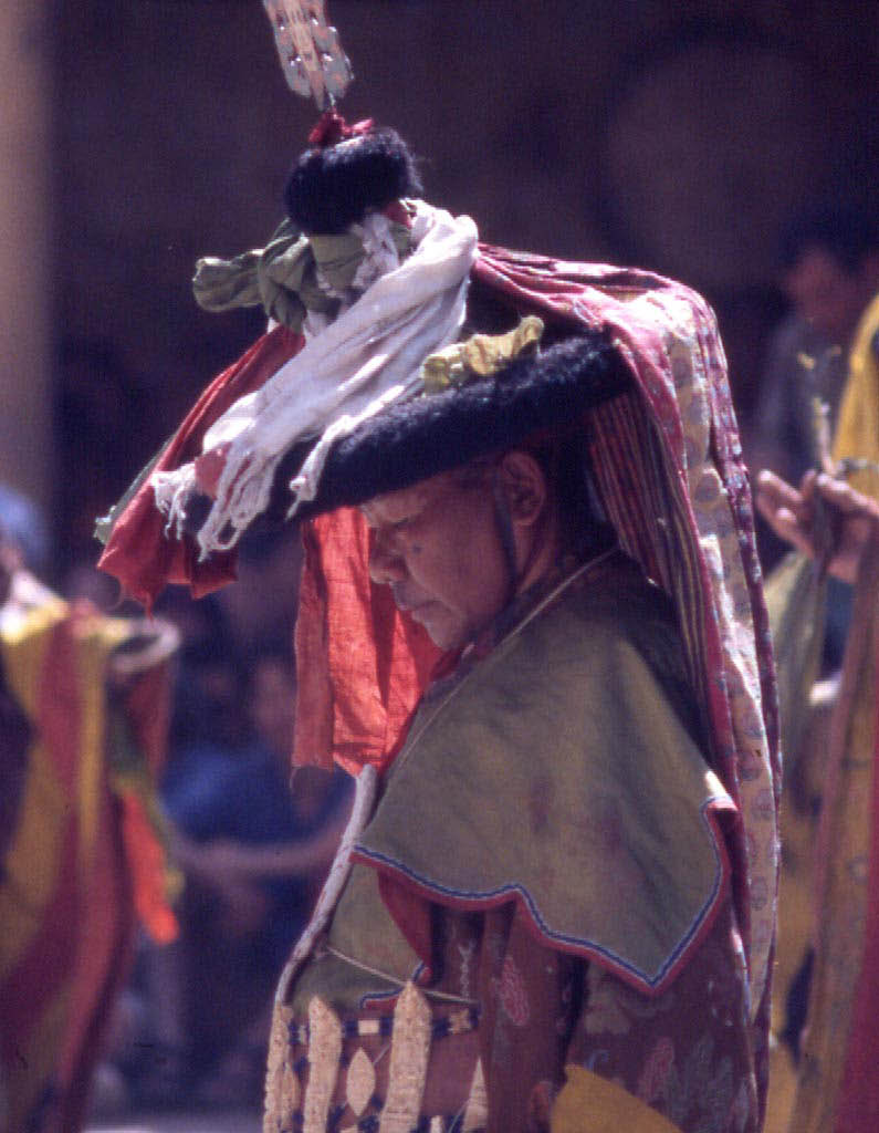 Six moines aux masques figurant les démons de l’enfer, chaussés de bottes de feutre et vêtus de robes de soie, s’affrontent en une danse rythmée par gongs et tambours. Les forces du bien arrivent ensuite pour affronter et triompher de celles du mal.