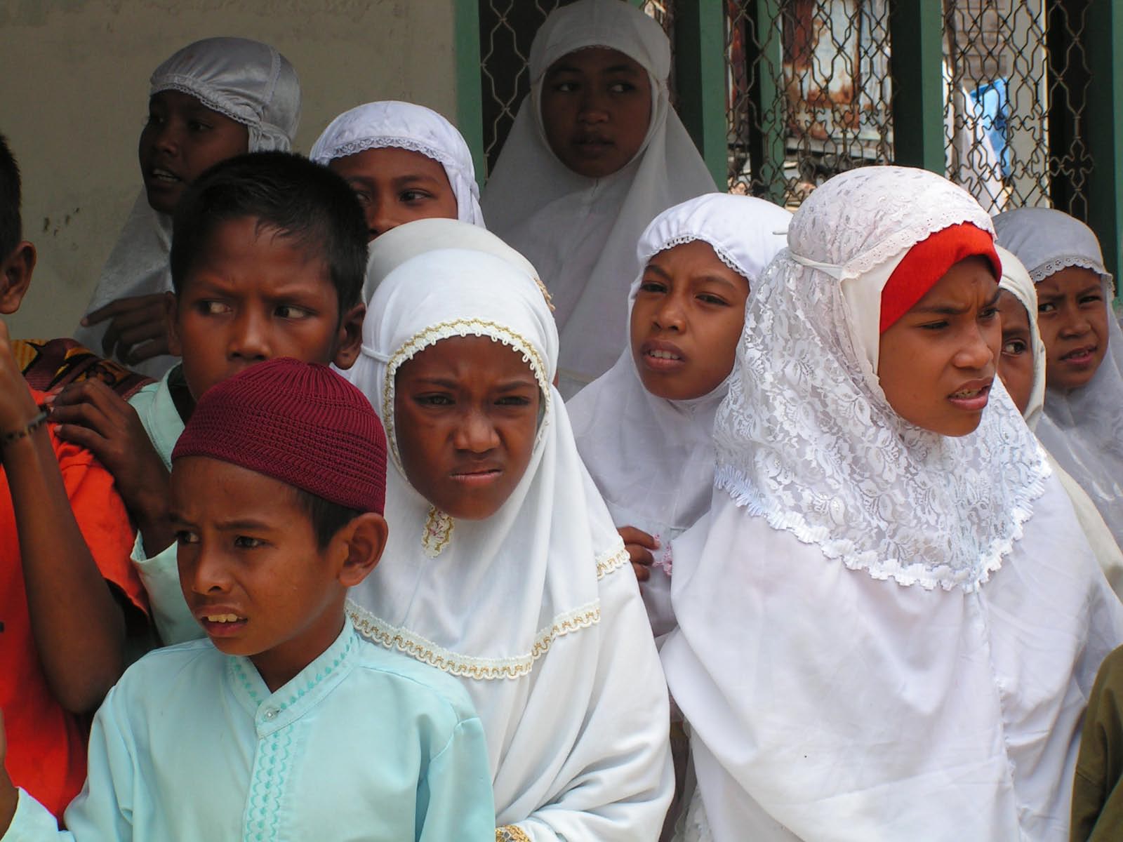 Jeunes a la sortie de la mosquée en Indonésie