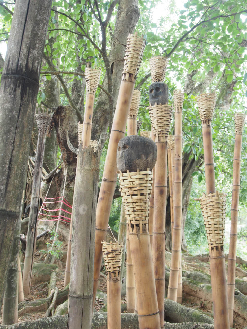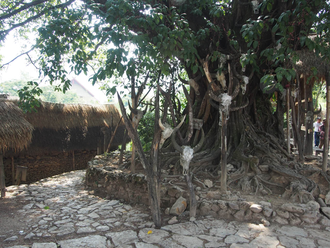 La tête de buffle est un totem pour, les Wa. Ils accrochent des têtes de buffle sur les arbres pour que le dieu du buffle les bénisse, leur donne une bonne récolte et une vie heureuse. Le nombre de têtes de buffle est un signe de fortune.