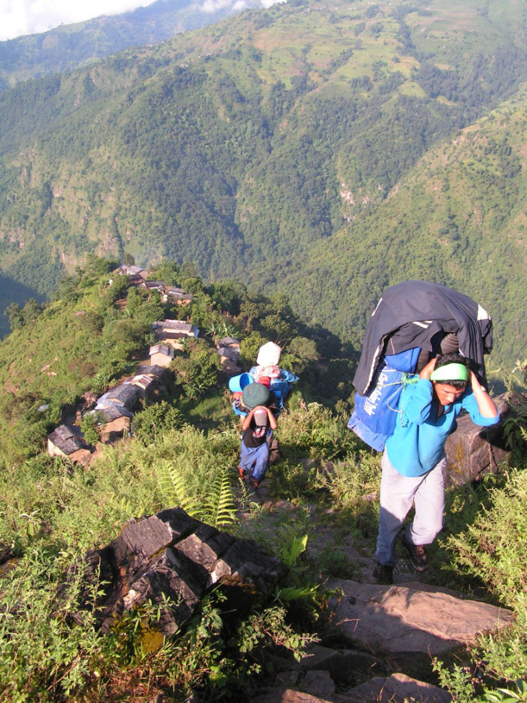 Les porteurs sont les routiers du Népal. Dans ce pays montagneux, les routes sont peu nombreuses et se limitent aux vallées les plus importantes. Pour la majorité des villages de montagne, le ravitaillement est donc réalisé à dos d'homme (et quelques fois de femmes).
