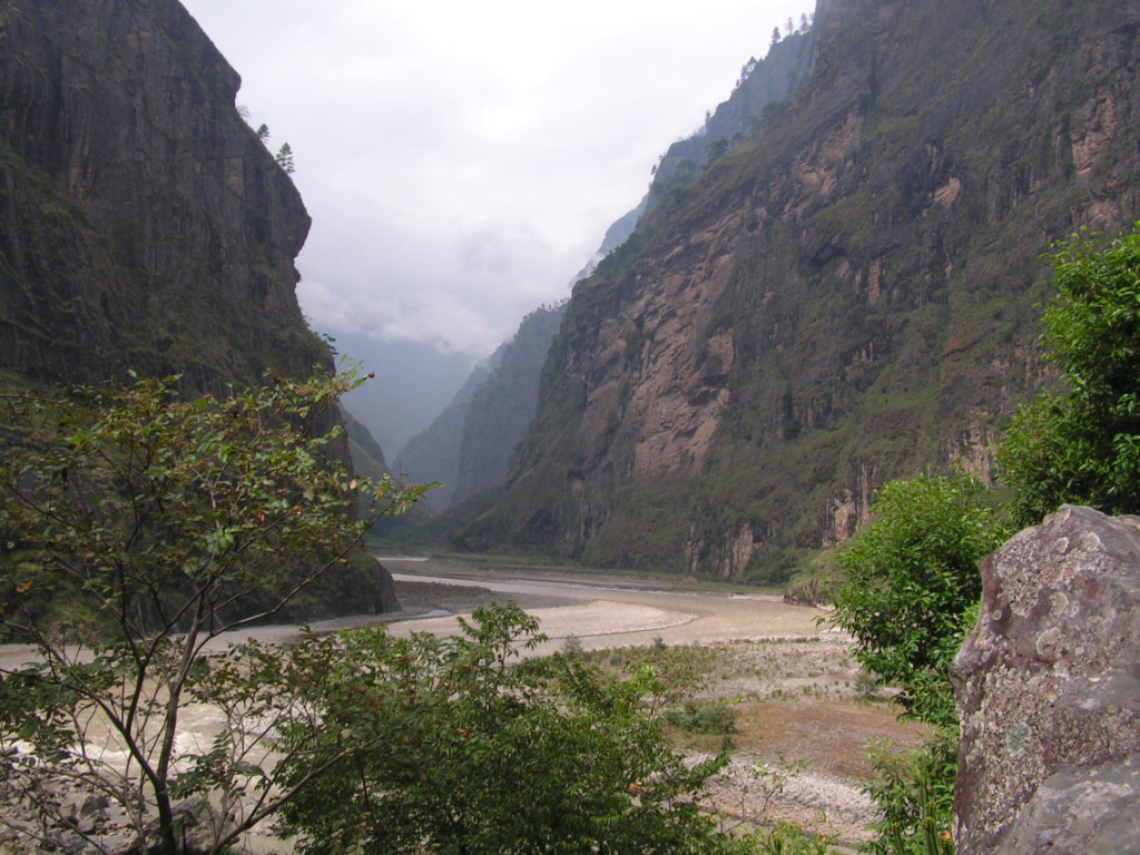 C'est en remontant le cours des grandes rivières qui fragmentent la chaîne Himalayenne que l'on peut prendre conscience de la dimension des gigantesques gorges.