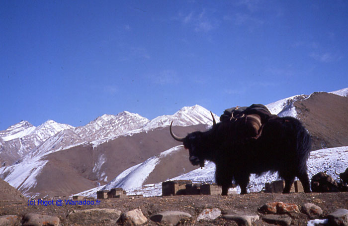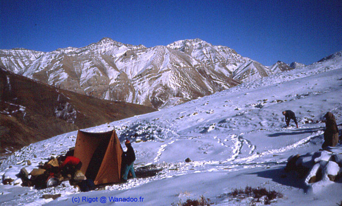 Deux cols sont à franchir, pour boucler notre trek: Num La (5100m) puis Bag La (5050m) où fut tourné le film Himalaya. Nous par chance, nous n'avons pas eu de tempête de neige, elle venait de passer. Notre campement à 4800m, entre les deux cols fut particulièrement frais, et il faut penser à équiper nos porteurs Népalais peu habillés pour résister aux mauvais temps.