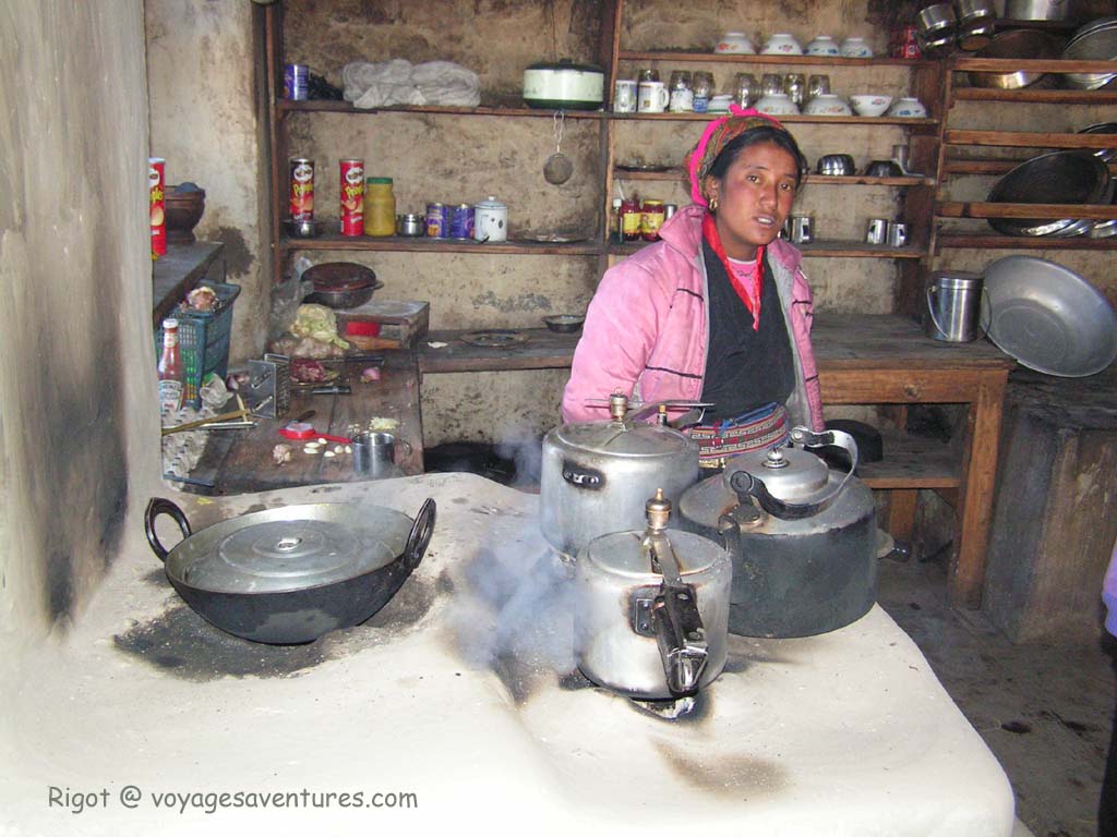 Les lodges pour trekkeurs, sont très bien aménagés. La cuisine est adaptée aux goûts occidentaux, mais le fourneau en argile est alimenté en bouse de Yak et la cuisinière est aux petits soins.