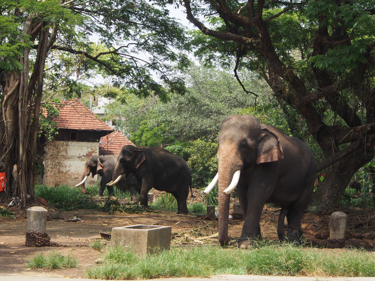 Je passais dans cette petite localité pour visiter Guruvayoorappan, maison de repos des éléphants située à Punnathur Kotta à d'environ 5 km. 40 à 50 pachydermes vivent une vie tranquille, mais solidement enchainés, dans ce temple aux Eléphants. Ils y sont dorlotés, nourris, lavés, brossés, pédicurés… pour partir de temps en temps parader dans les fêtes et processions du pays.